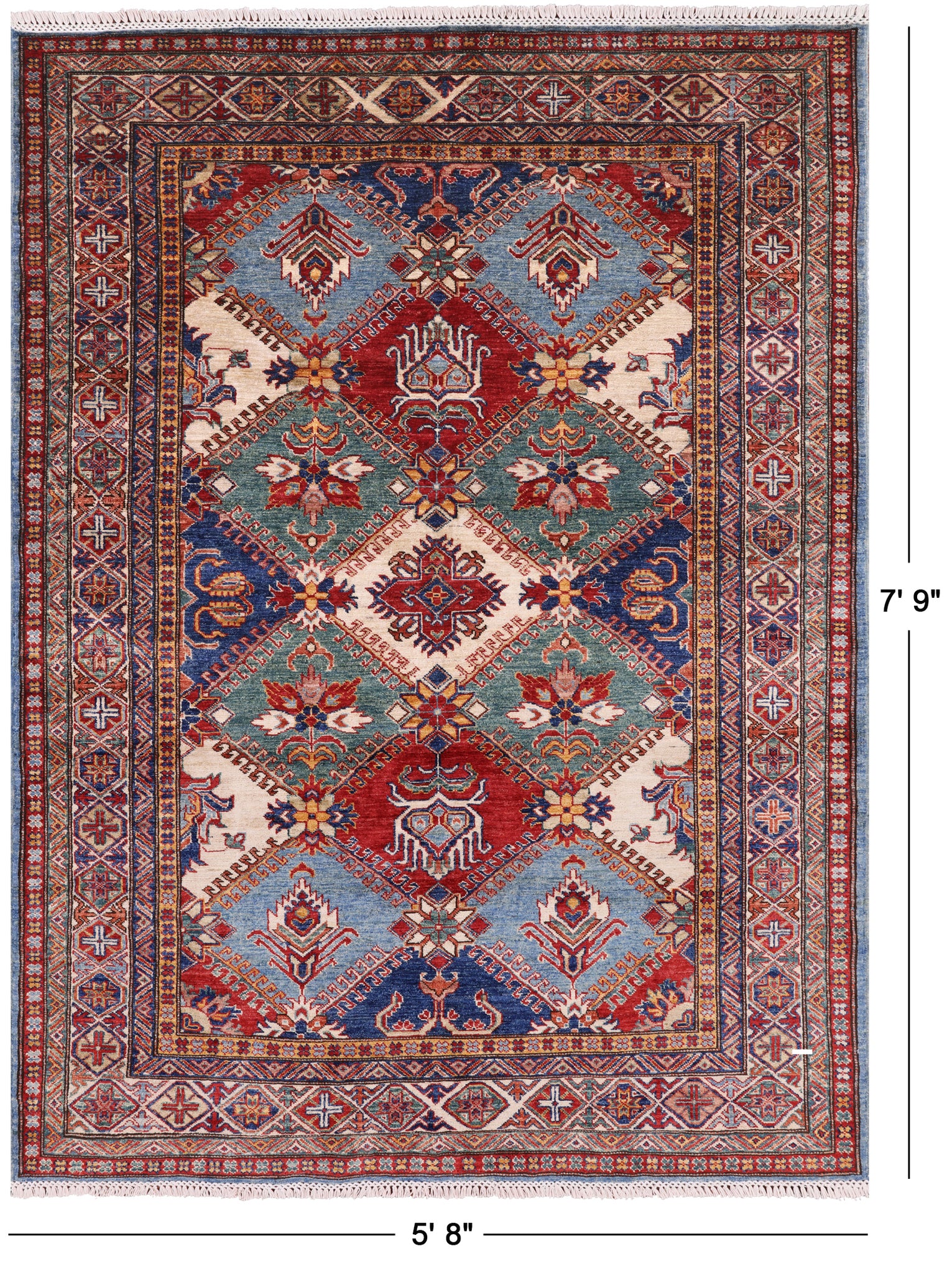 Super Kazak Hand Knotted Wool Rug - 5' 8" X 7' 9"