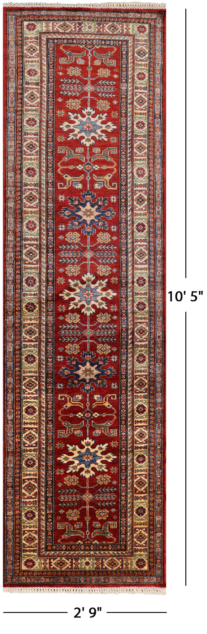 Red Super Kazak Hand Knotted Wool Runner Rug - 2' 9" X 10' 5"