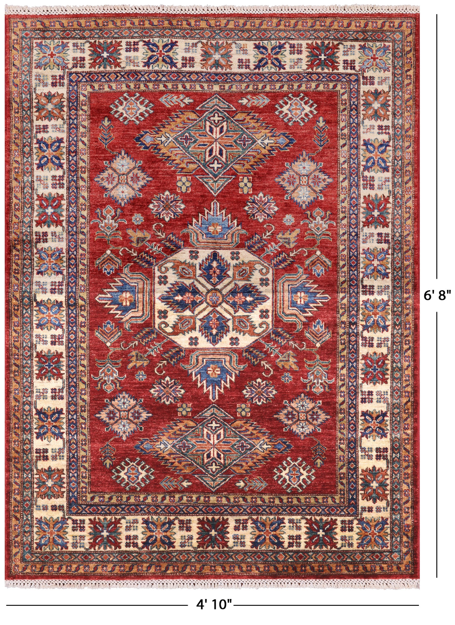 Red Super Kazak Hand Knotted Wool Area Rug - 4' 10" X 6' 8"