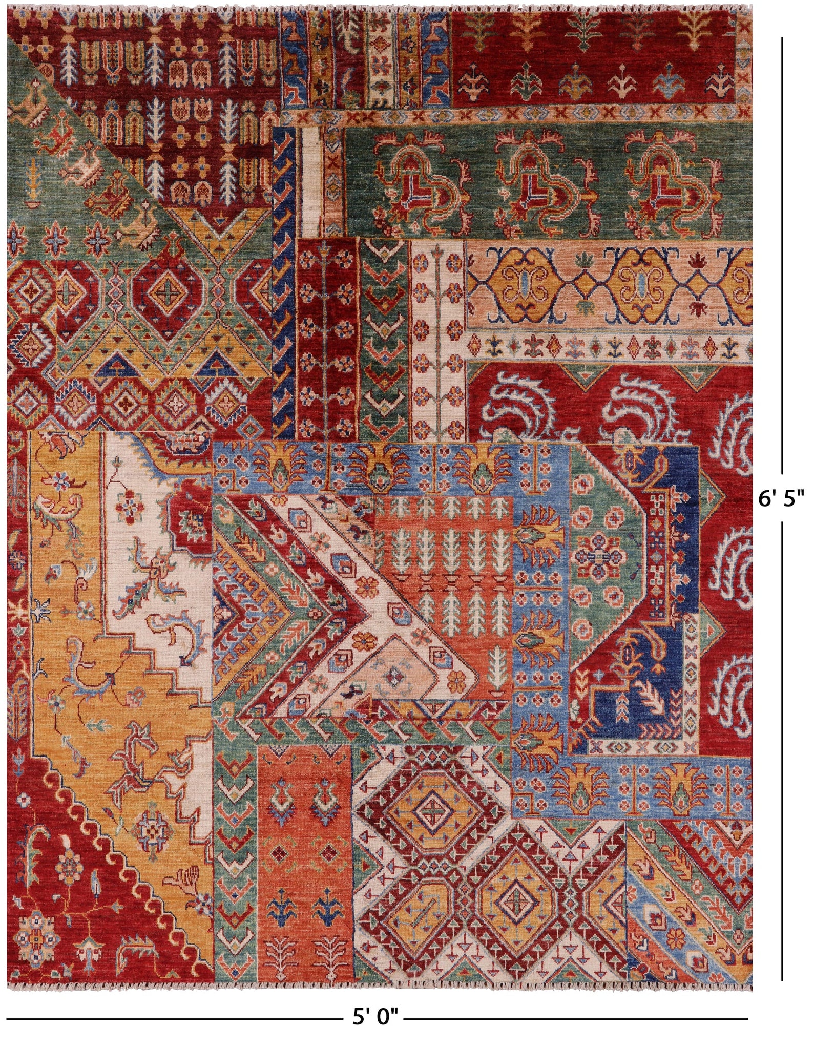 Super Kazak Hand Knotted Wool Rug - 5' 0" X 6' 5"