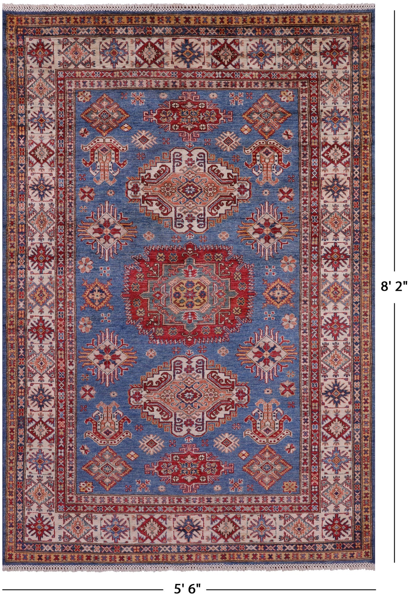 Blue Super Kazak Hand Knotted Wool Rug - 5' 6" X 8' 2"