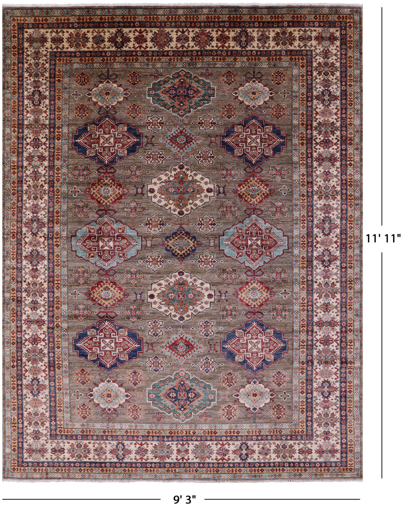 Super Kazak Hand Knotted Wool Rug - 9' 3" X 11' 11"