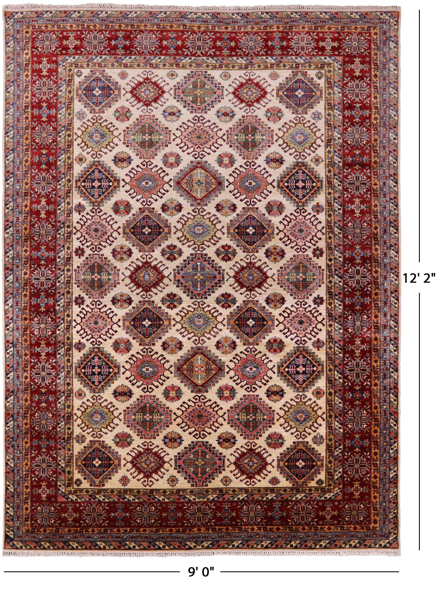 Ivory Super Kazak Handmade Area Rug - 9' 0" X 12' 2"