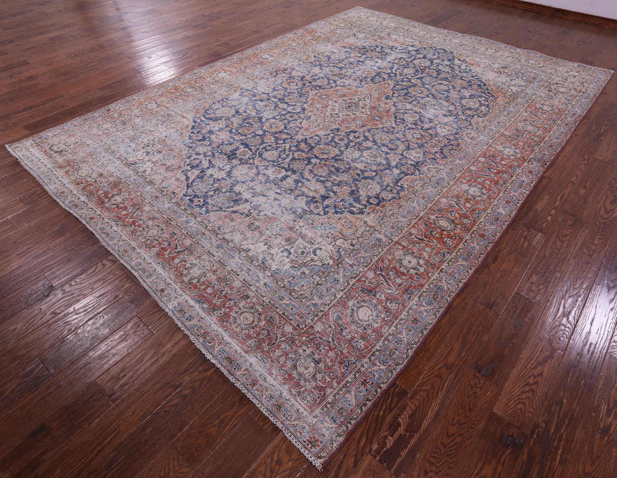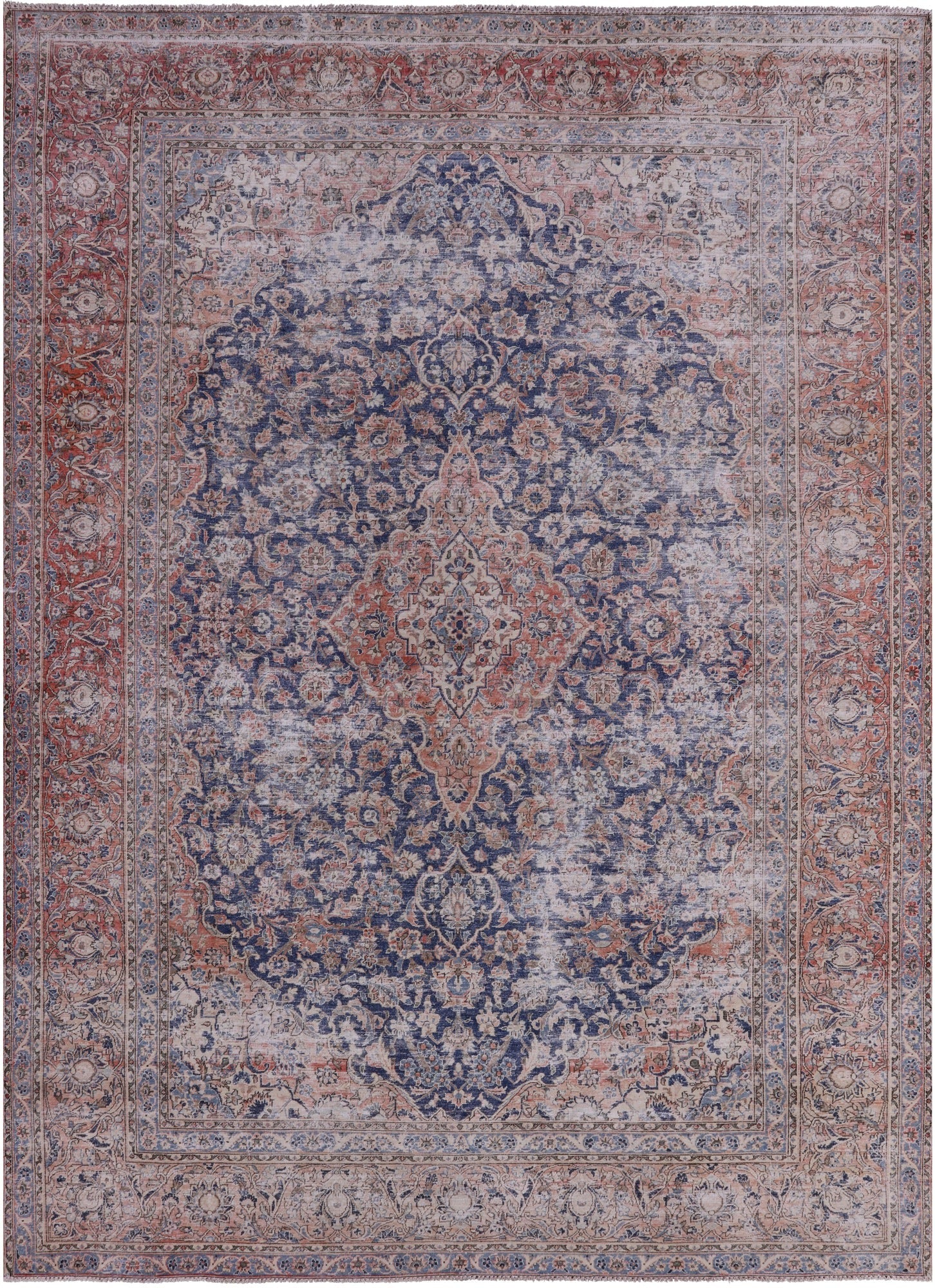 Blue Persian Vintage White Wash Hand Knotted Wool Rug - 8' 10" X 12' 7"