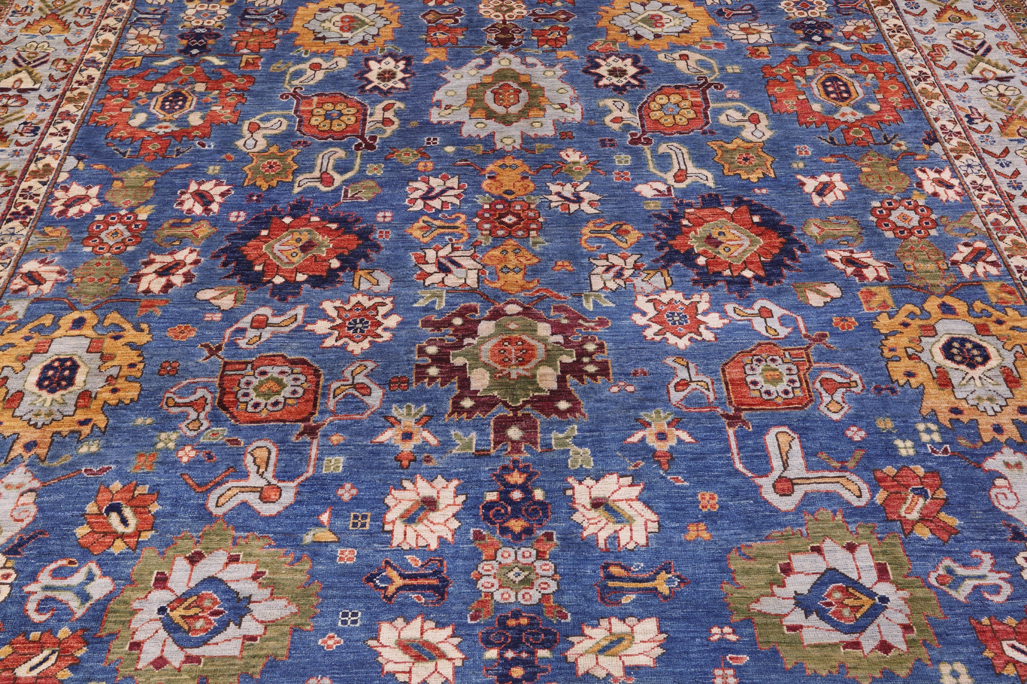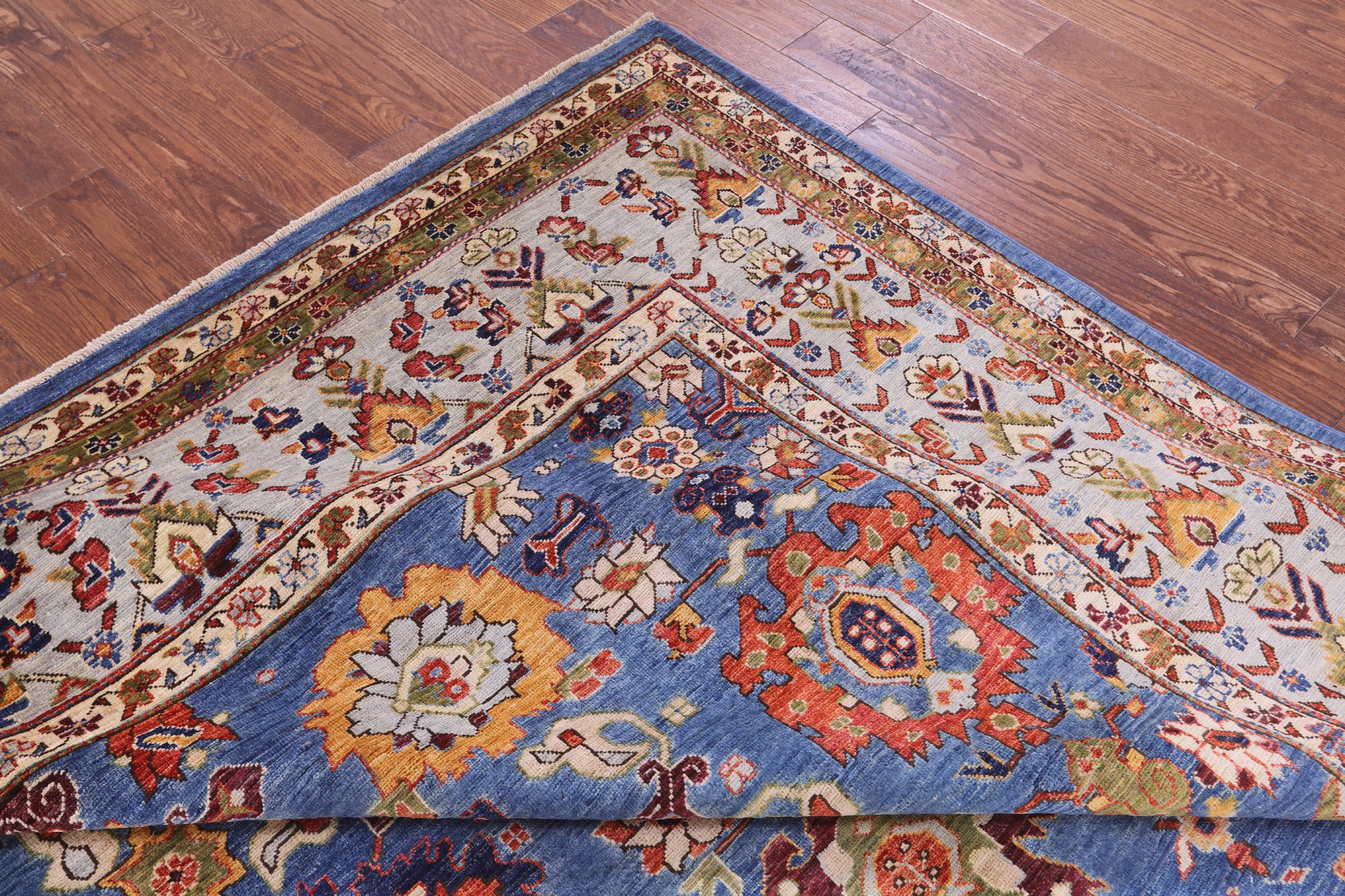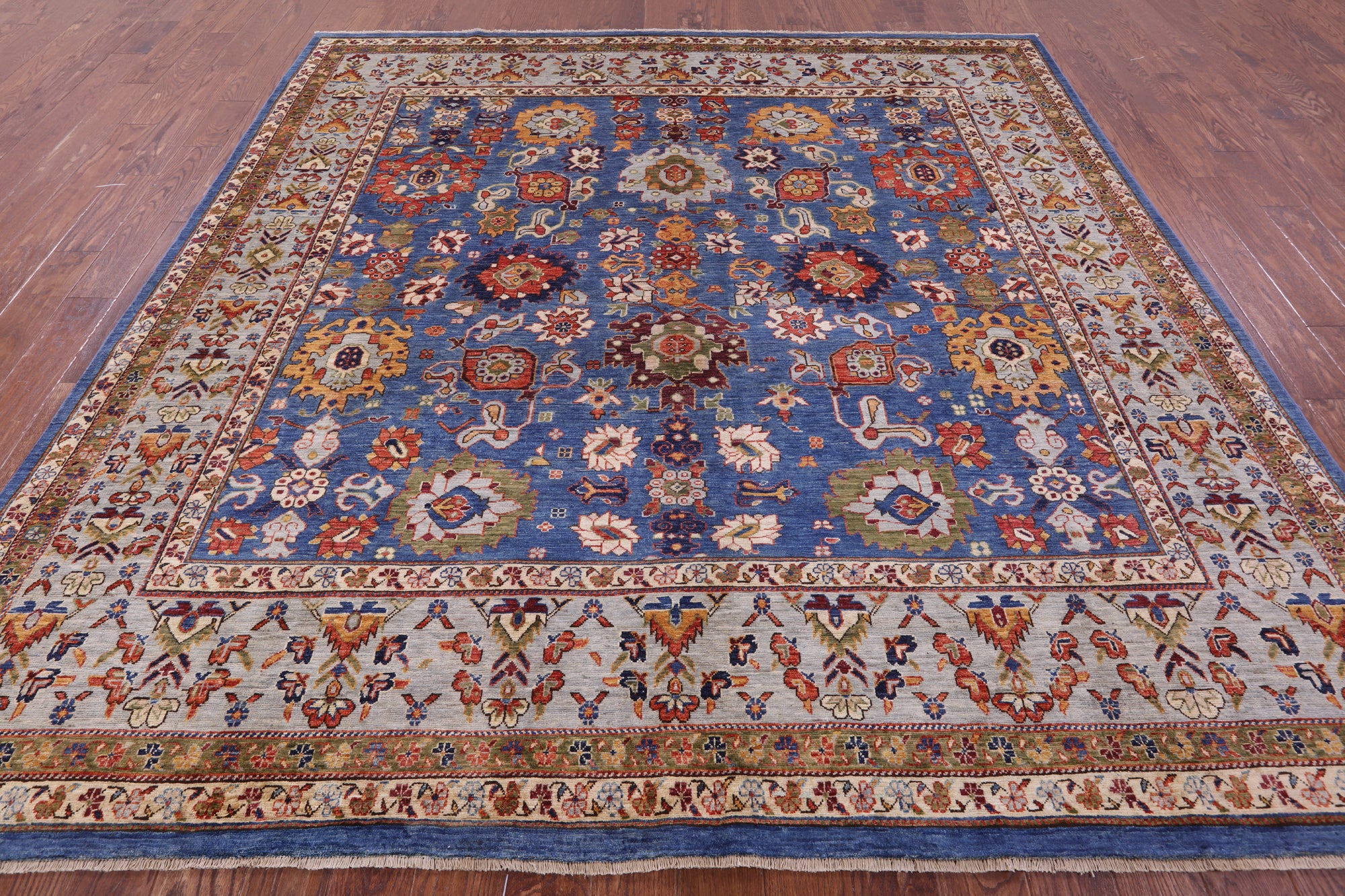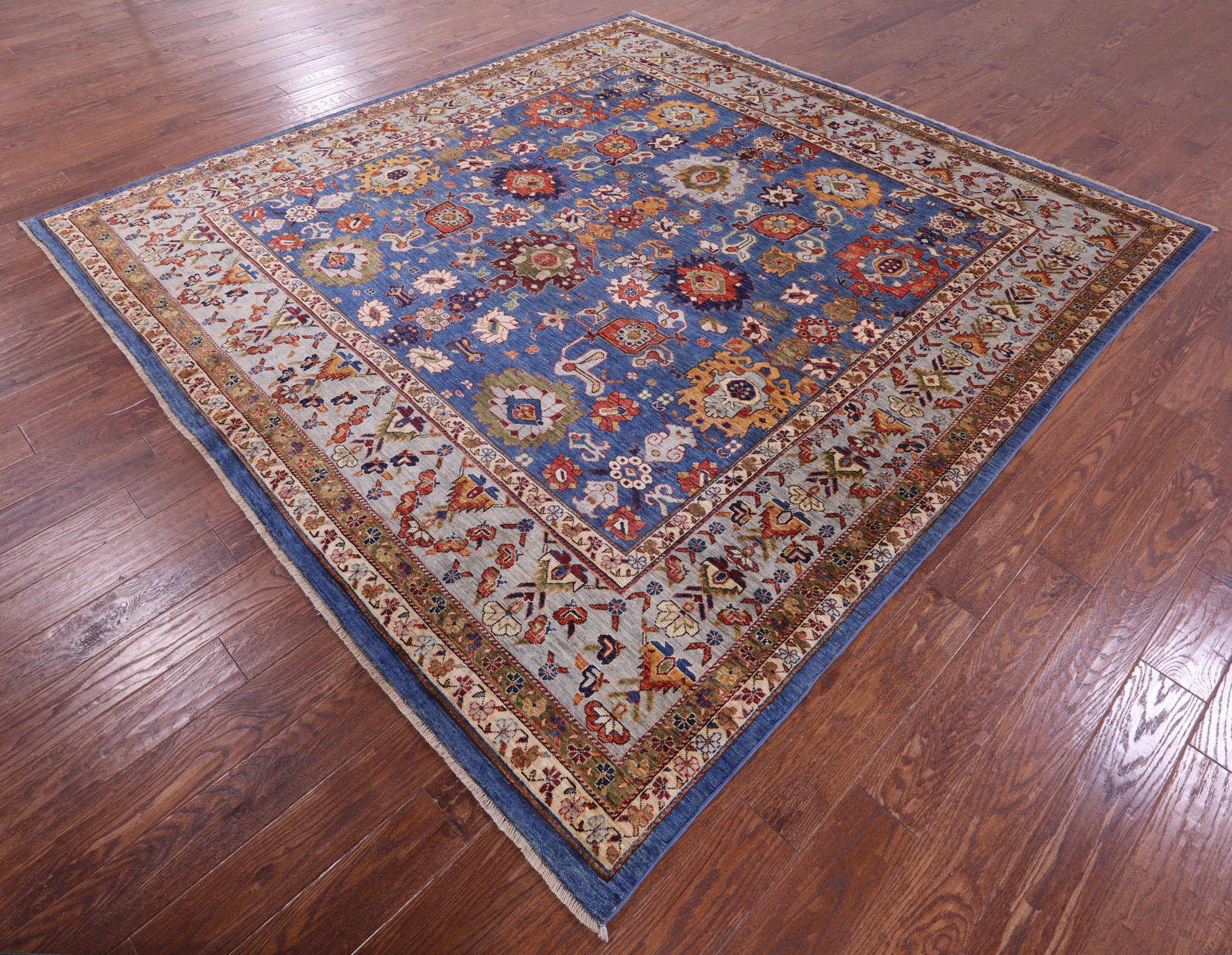 Blue Square Persian Fine Serapi Hand Knotted Wool Rug - 8' 11" X 9' 4"