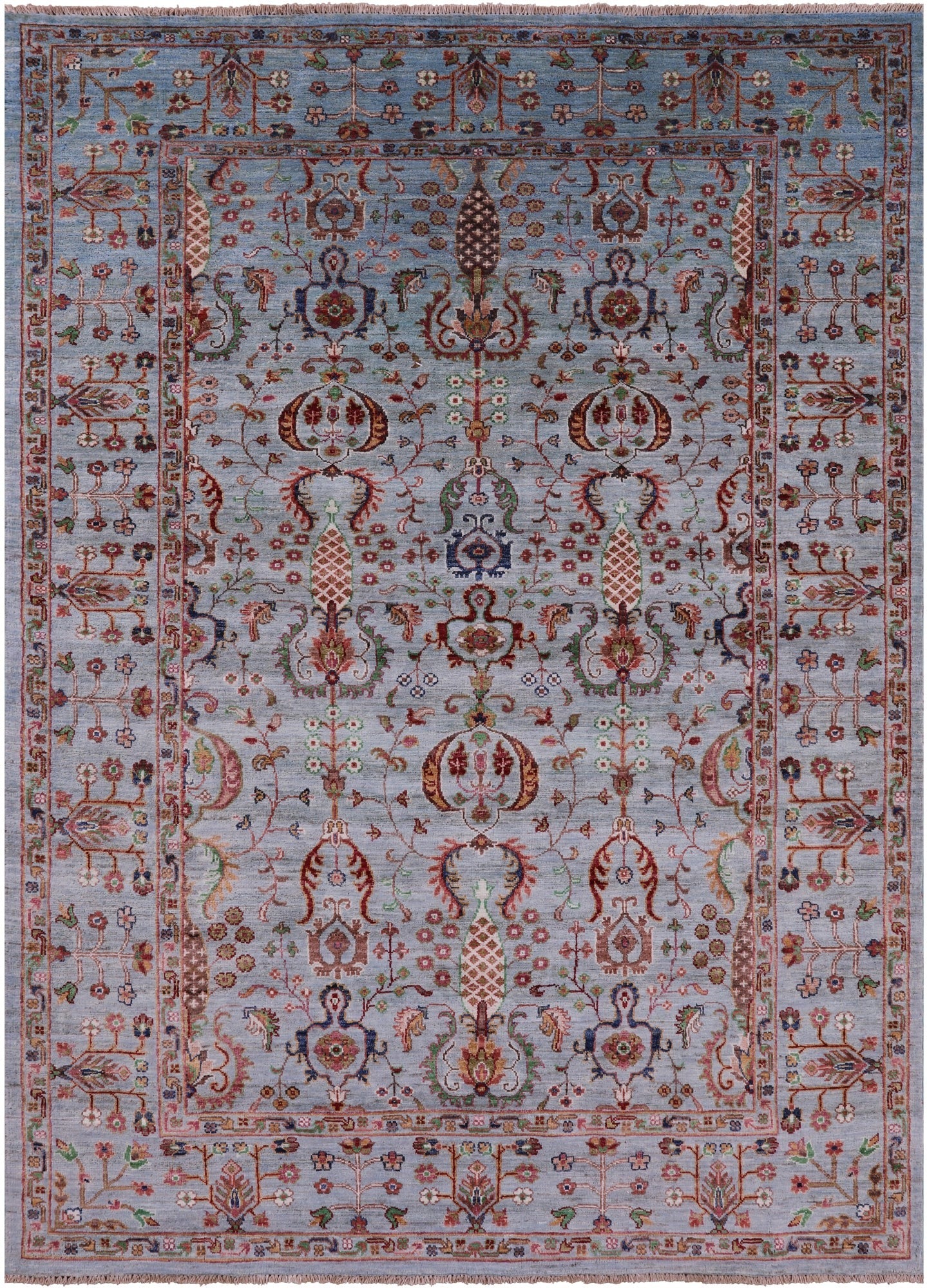 Peshawar Rugs are elegant rugs that are completely hand-spun using a wool pile and a cotton foundation. Occasionally weavers use natural silk in the pile to highlight particular features. Designs are influenced by Kazak & Caucasian styles. These rugs have an attractive natural luster as well as a durable pile and are complementary to antique or modern interiors.