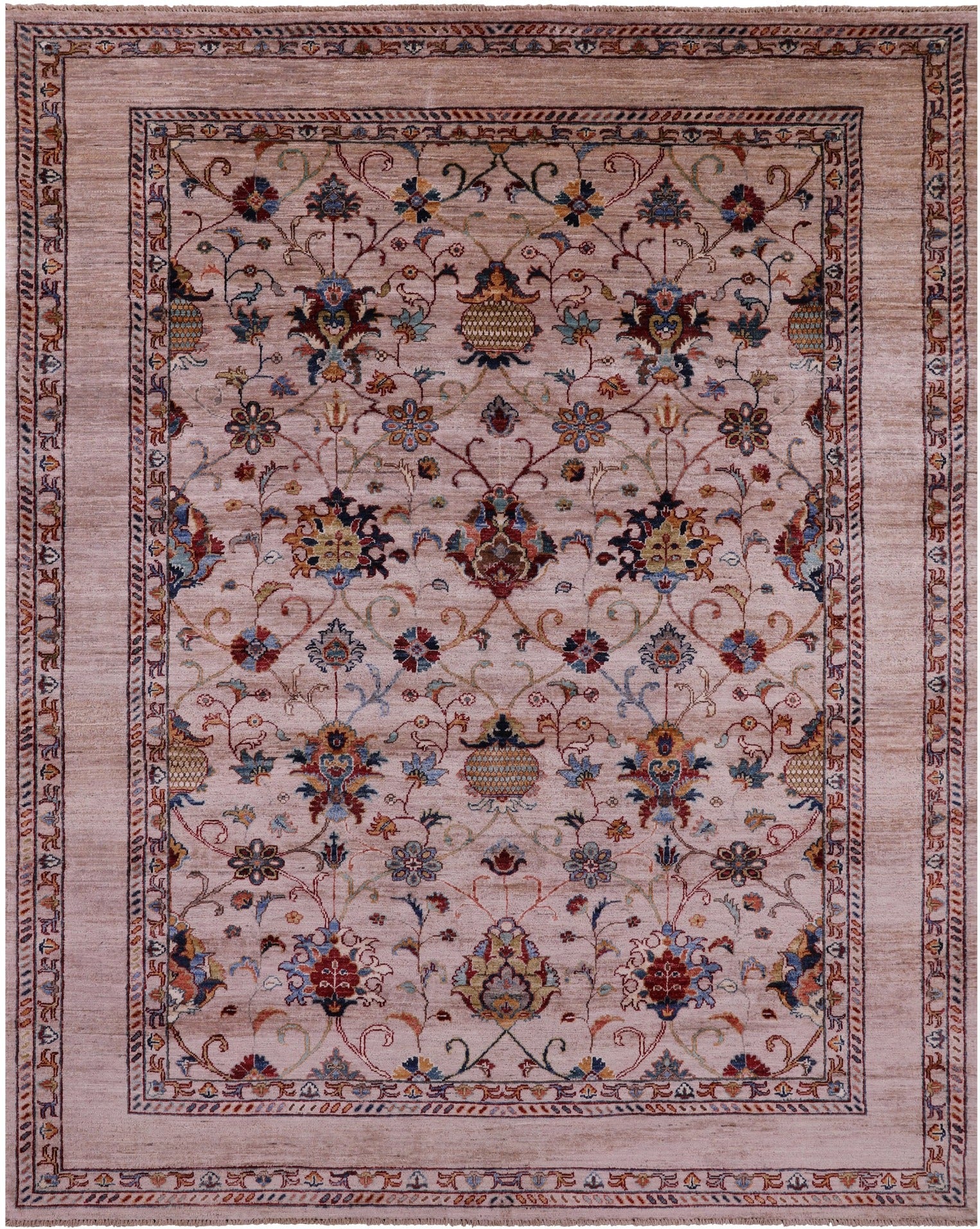 Peshawar Rugs are elegant rugs that are completely hand-spun using a wool pile and a cotton foundation. Occasionally weavers use natural silk in the pile to highlight particular features. Designs are influenced by Kazak & Caucasian styles. These rugs have an attractive natural luster as well as a durable pile and are complementary to antique or modern interiors.