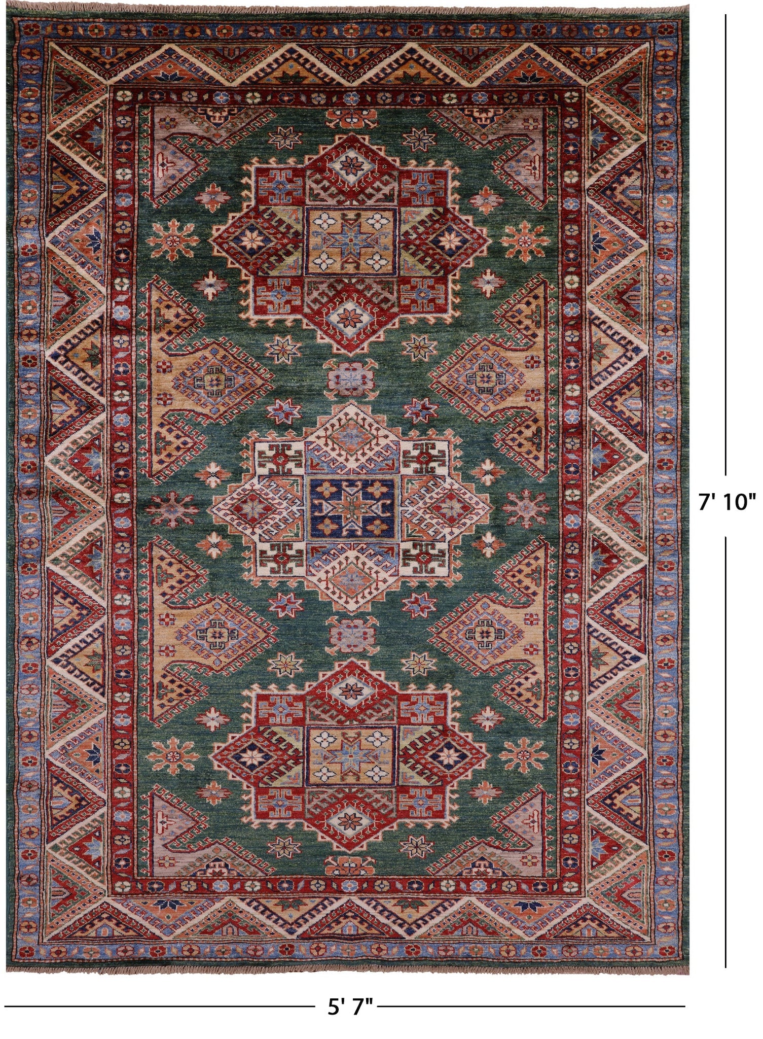 Kazak Rugs are popular for their stunning geometric designs & high quality dyes. Kazak patterns tend to be red, yellow/gold and blue. Designs include, but are not limited to animals, flowers, medallions, & iconic figures such as geometric people/ and animals & symbolic motifs.