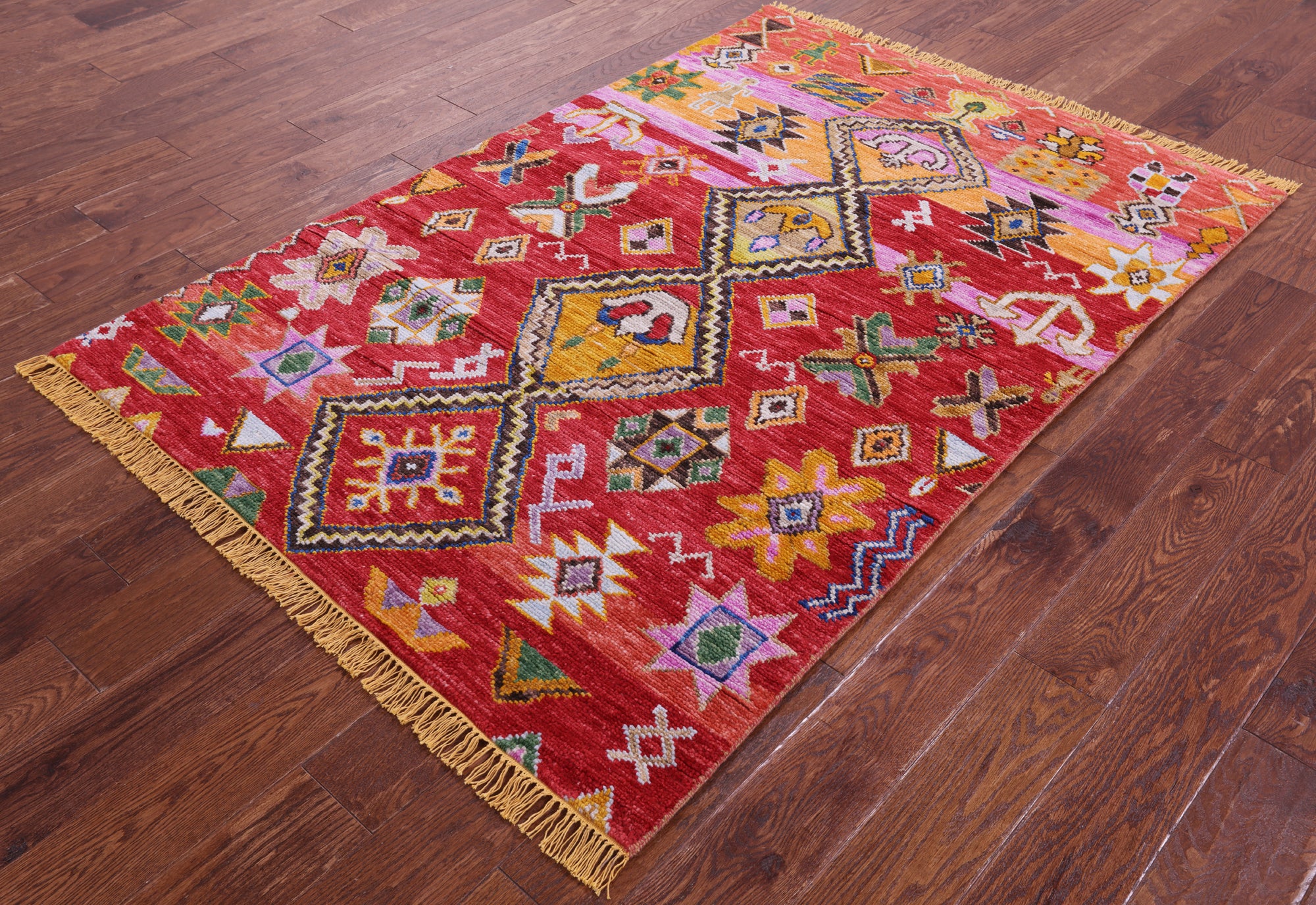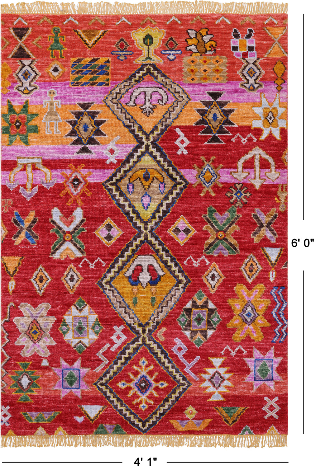 Tribal Moroccan Handmade Wool Rug - 4' 1" X 6' 0"