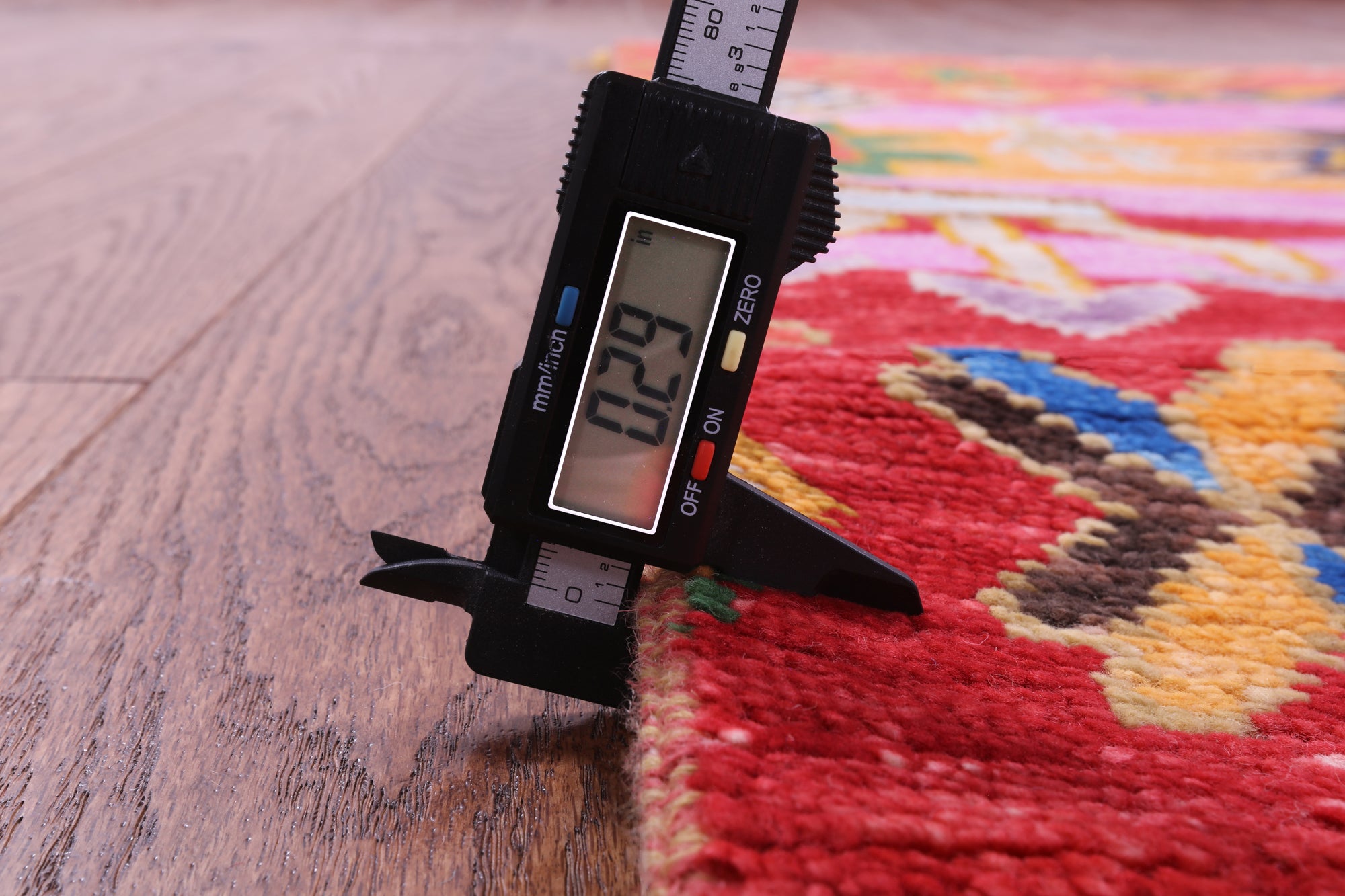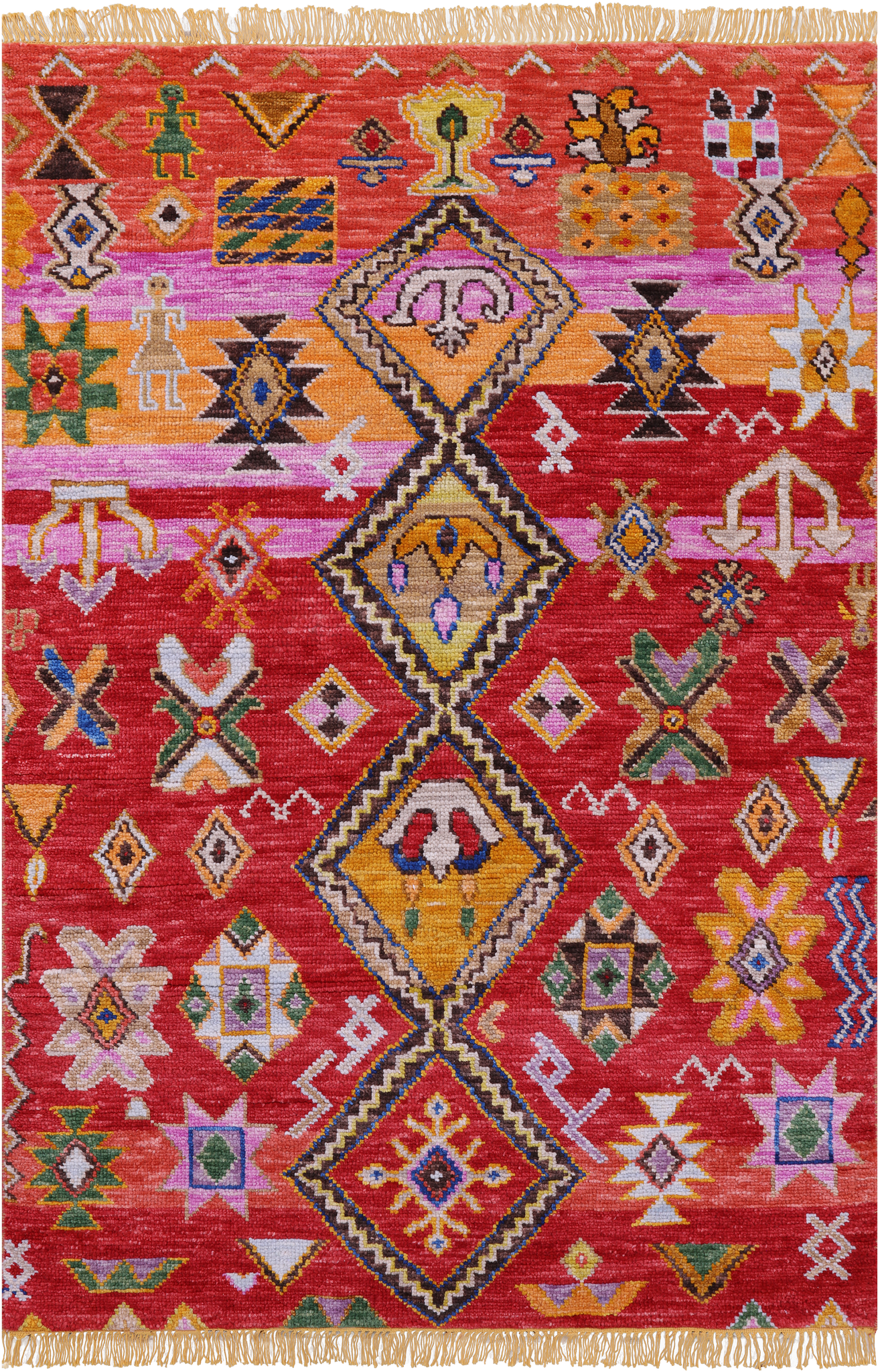 Moroccan Rugs are hand-knotted Oriental rugs that consist of a thick wool pile. Some Moroccan pieces are 100% Wool while others contain a Wool & Silk blend. Each Moroccan has a bit of history depicting strong aspect of culture, and its designs are inspired by nature and the imagination. These pieces of art are usually dyed in bold colors, and the designs are almost always geometric or tribal.