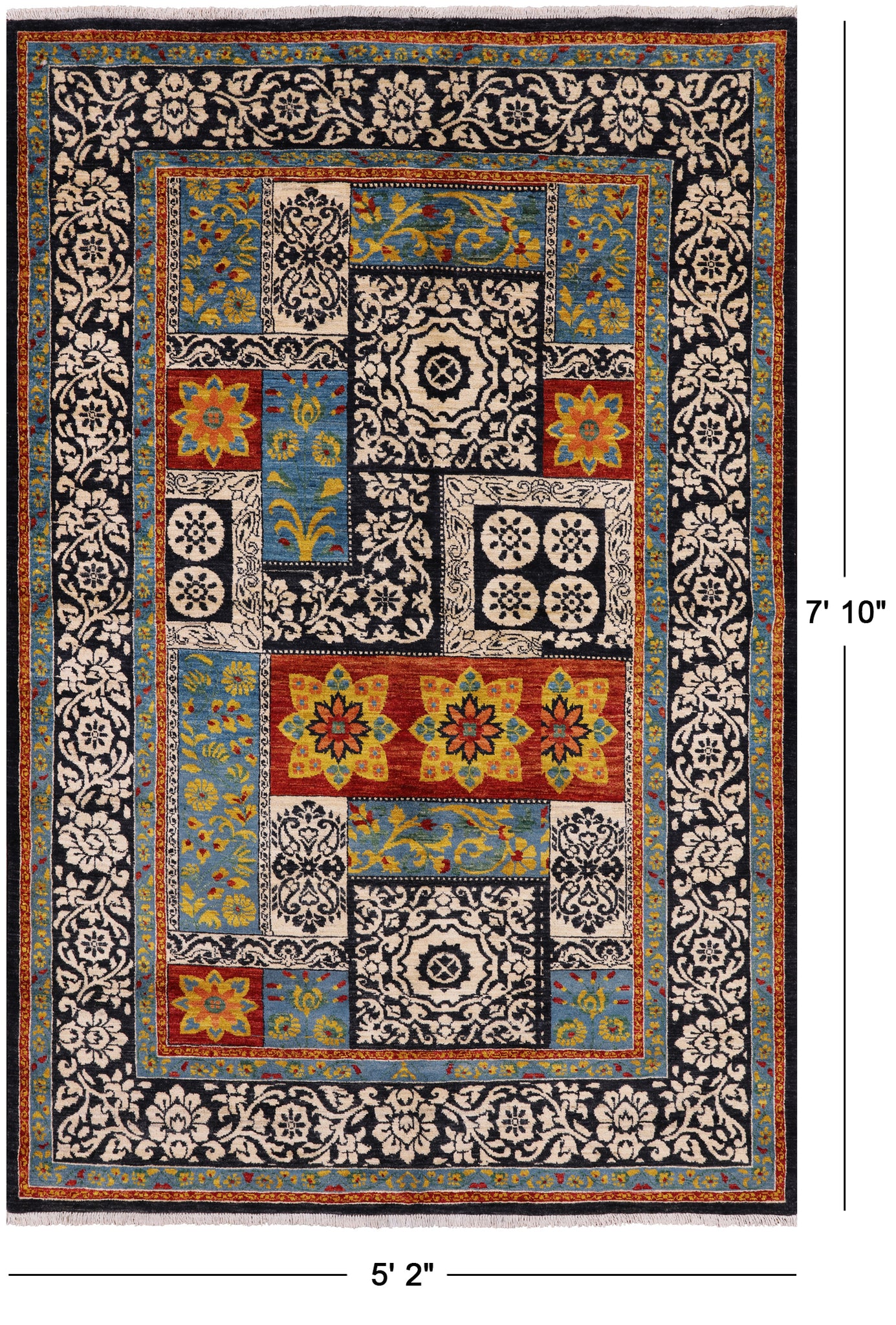 Black William Morris Handmade Wool Area Rug - 5' 2" X 7' 10"