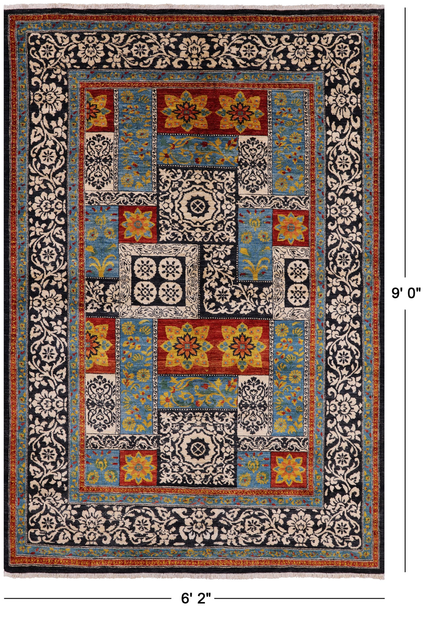 Black William Morris Hand Knotted Wool Area Rug - 6' 2" X 9' 0"