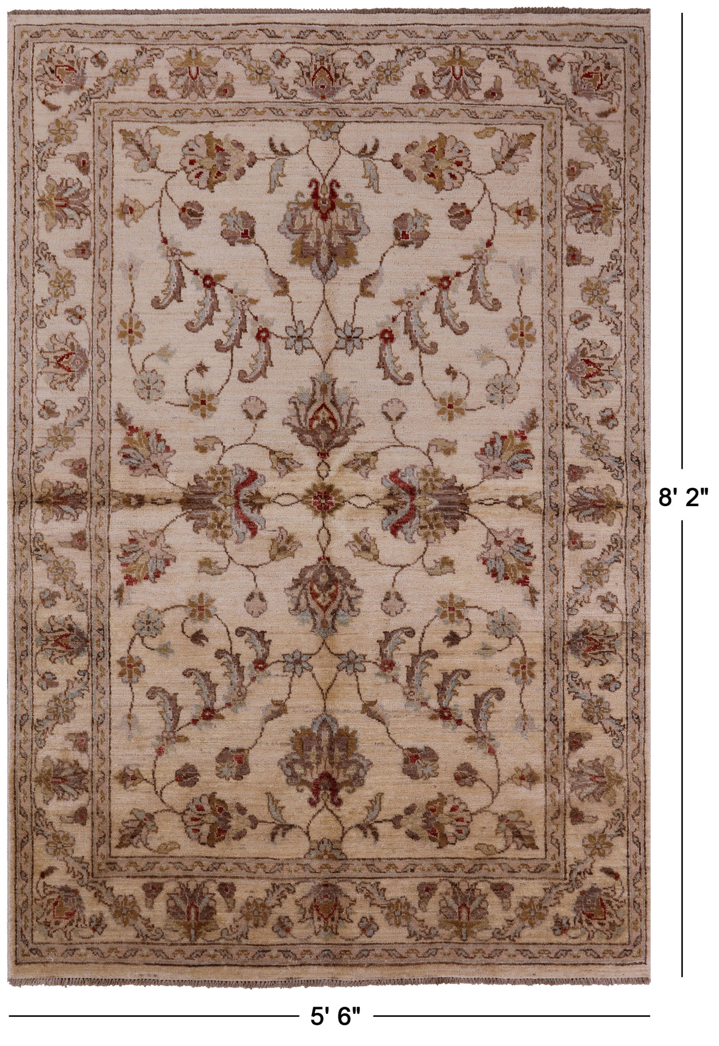 Ivory Peshawar Hand Knotted Wool Rug - 5' 6" X 8' 2"