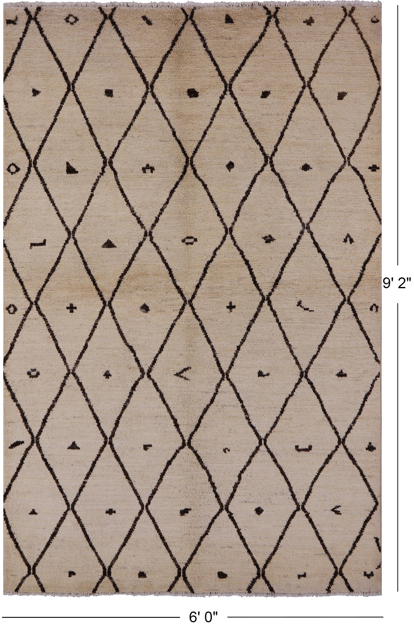 Ivory Tribal Moroccan Hand Knotted Wool Rug - 6' 0" X 9' 2"