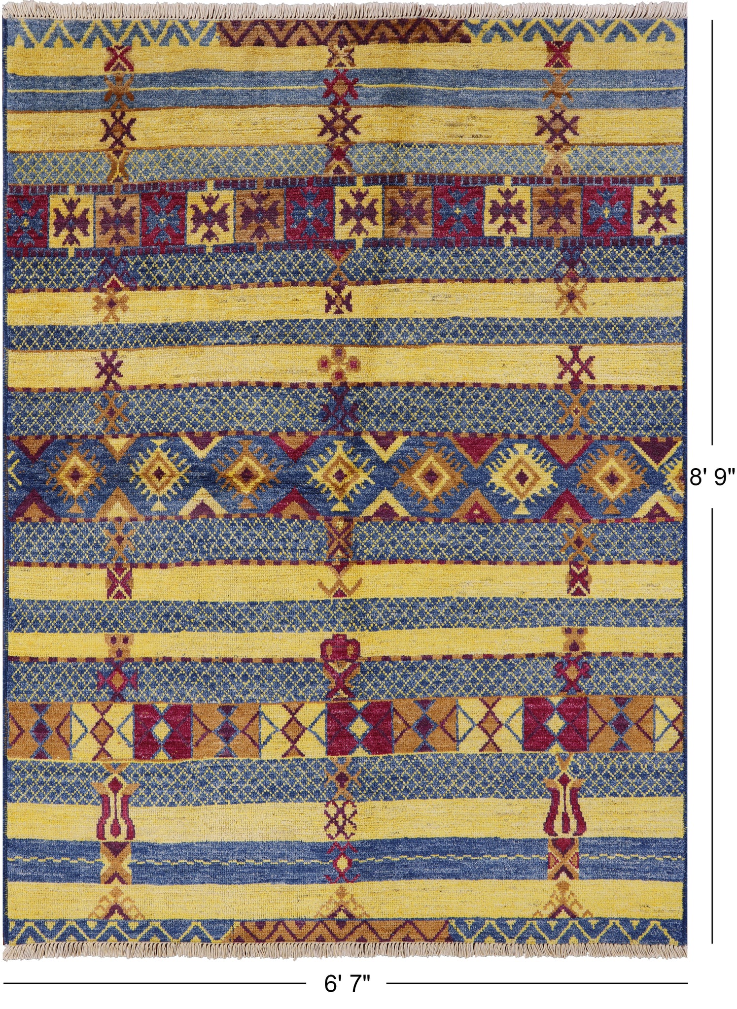 Tribal Moroccan Hand Knotted Wool Rug - 6' 7" X 8' 9"
