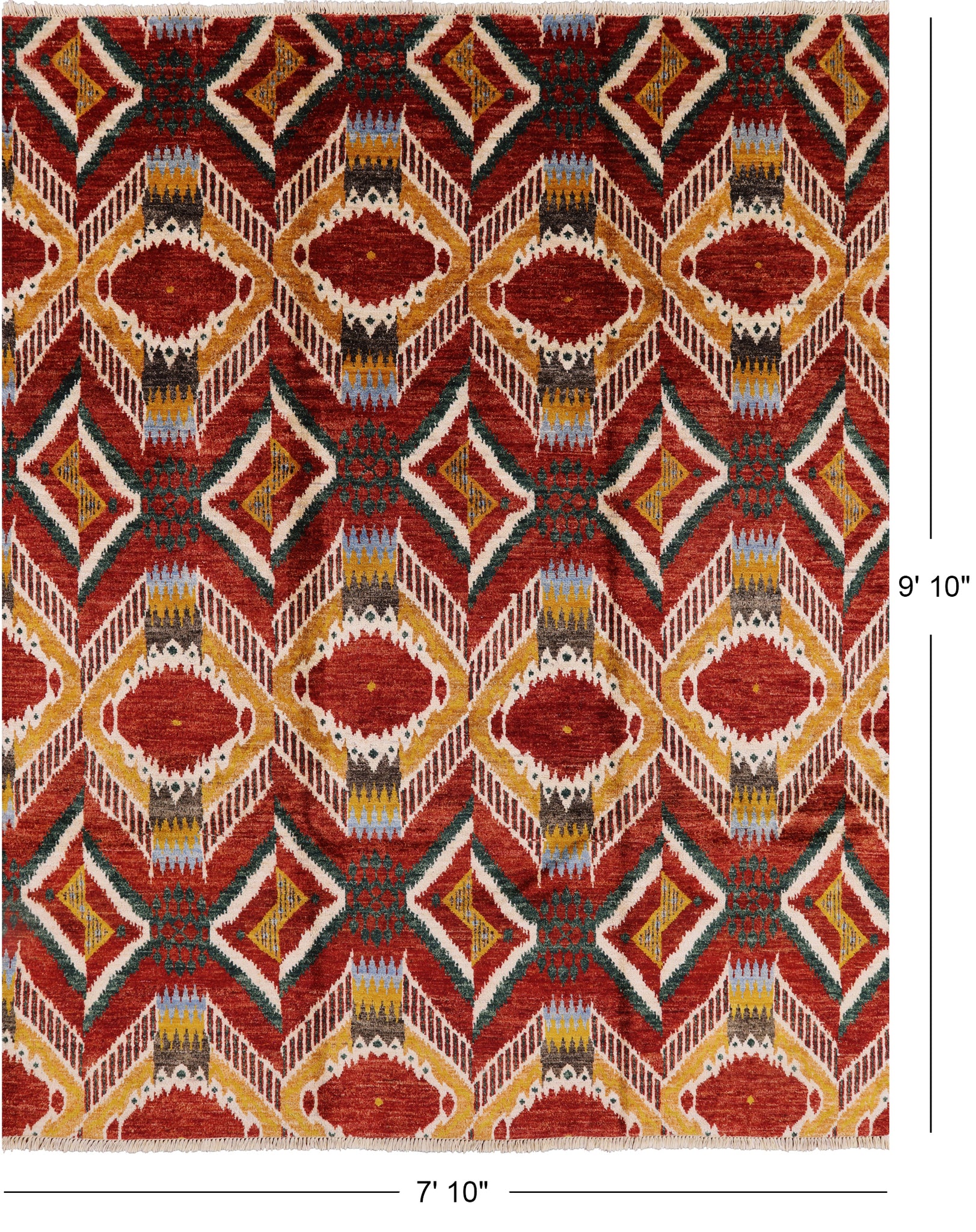 Ikat Handmade Wool Rug - 7' 10" X 9' 10"