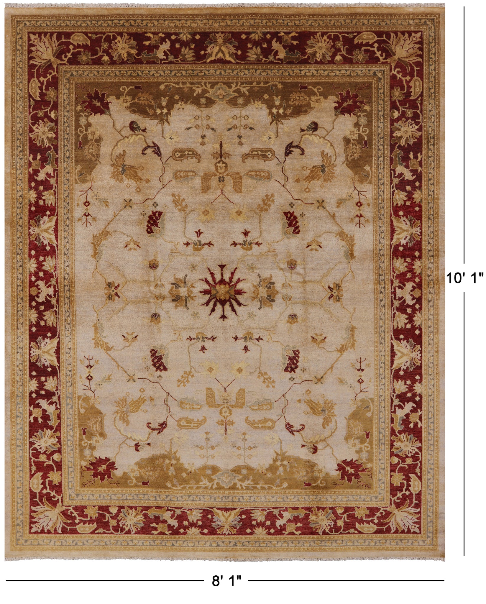 Ivory Chobi Peshawar Handmade Wool Rug - 8' 1" X 10' 1"