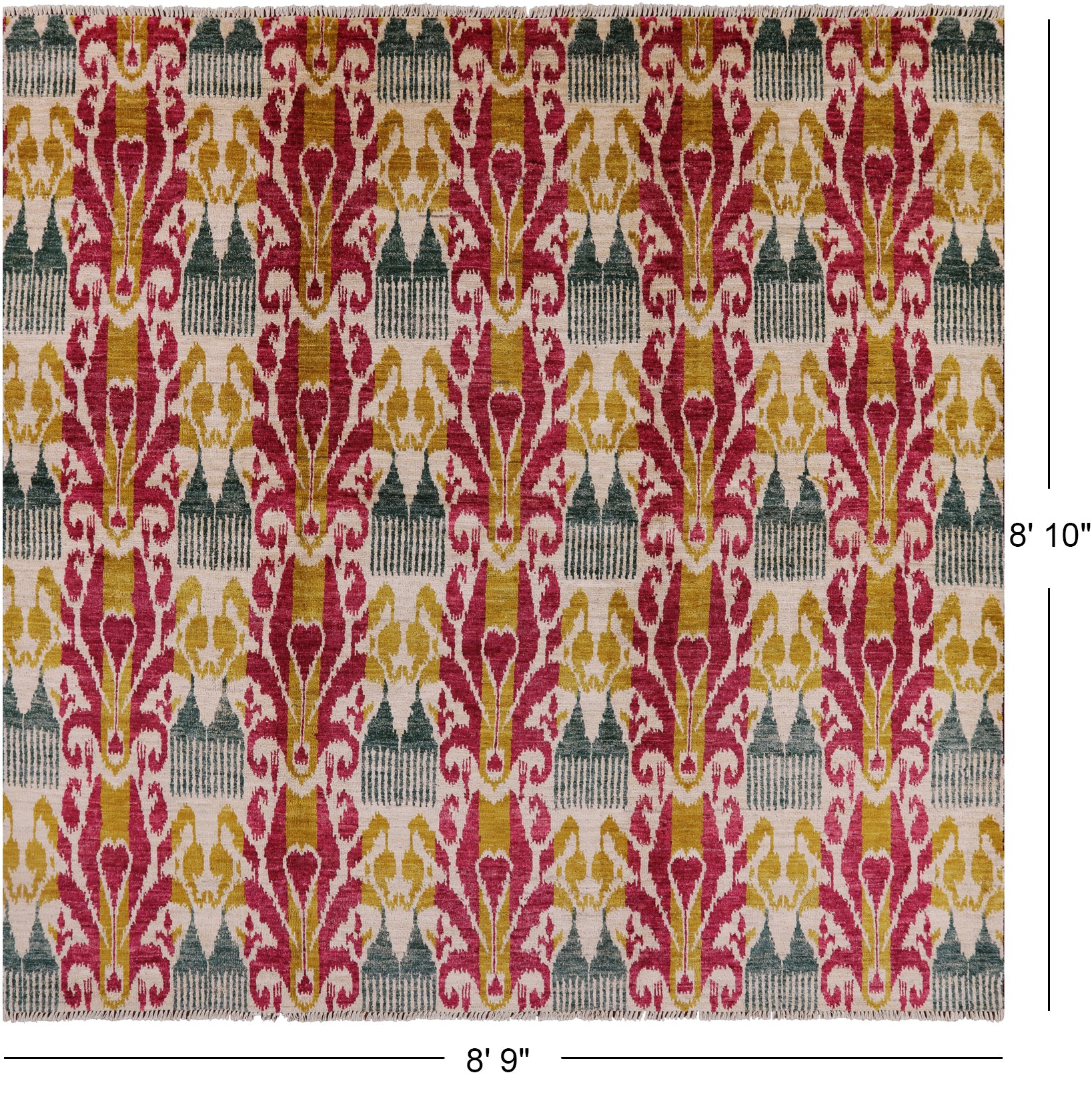 Square Ikat Handmade Wool Area Rug - 8' 9" X 8' 10"