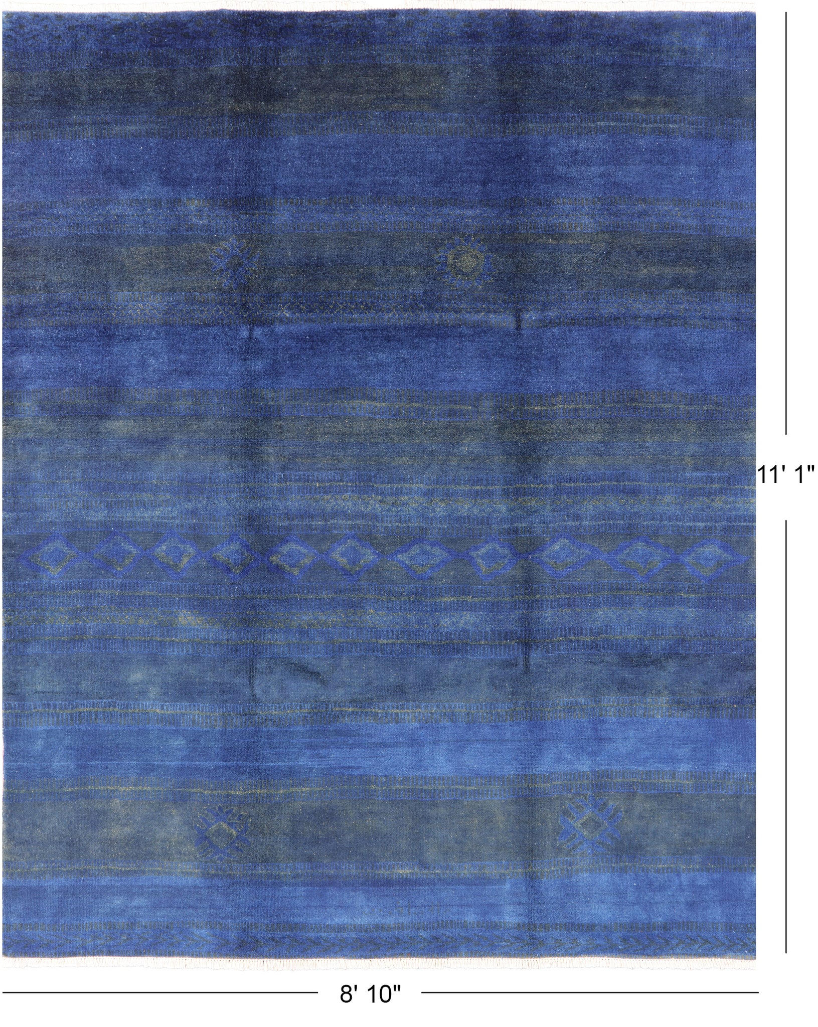 Blue Moroccan Hand Knotted Area Rug - 8' 10" X 11' 1"