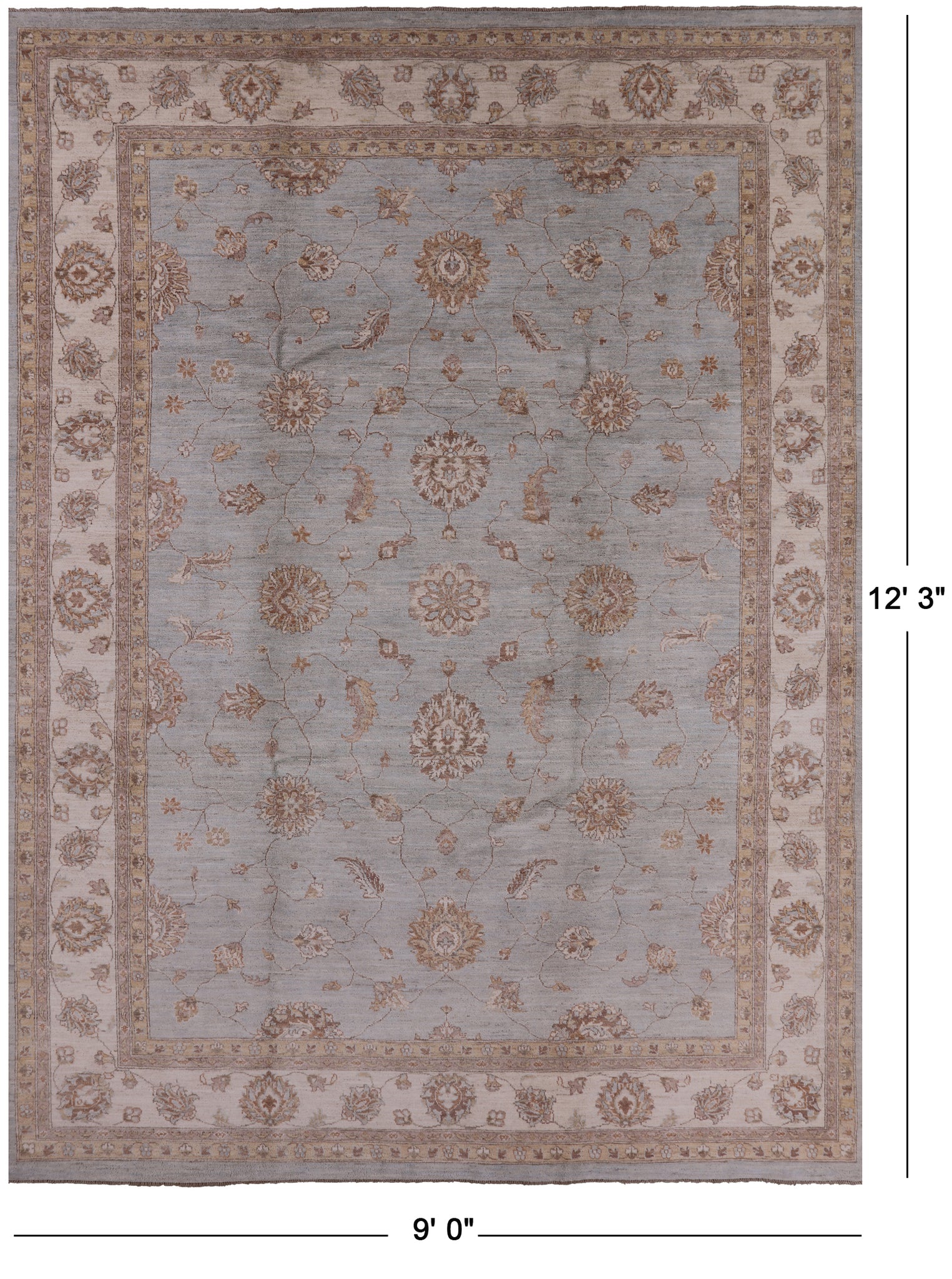 Light Blue Peshawar Handmade Wool Area Rug - 9' 0" X 12' 3"