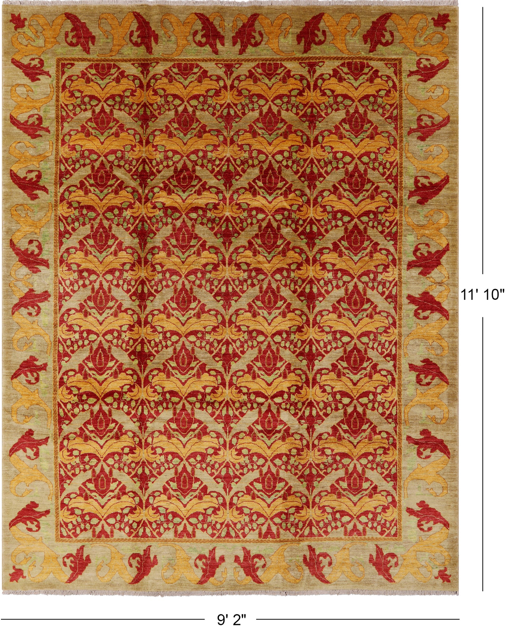 Red William Morris Hand Knotted Area Rug - 9' 2" X 11' 10"