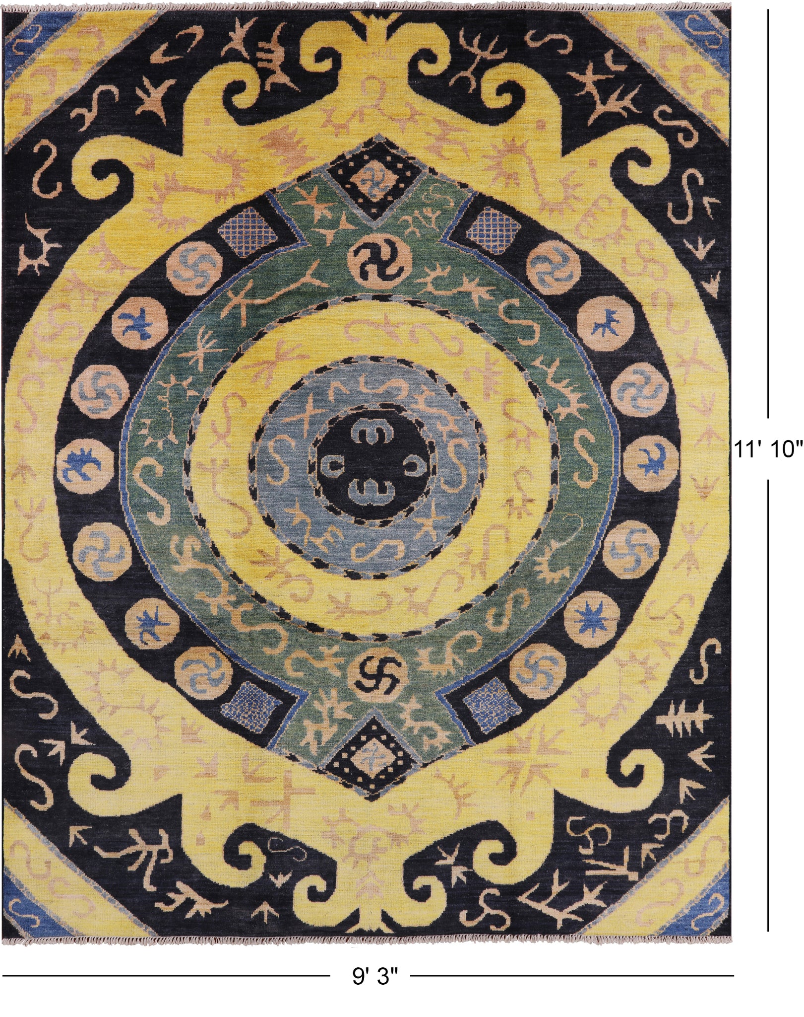 Ikat Hand Knotted Wool Area Rug - 9' 3" X 11' 10"