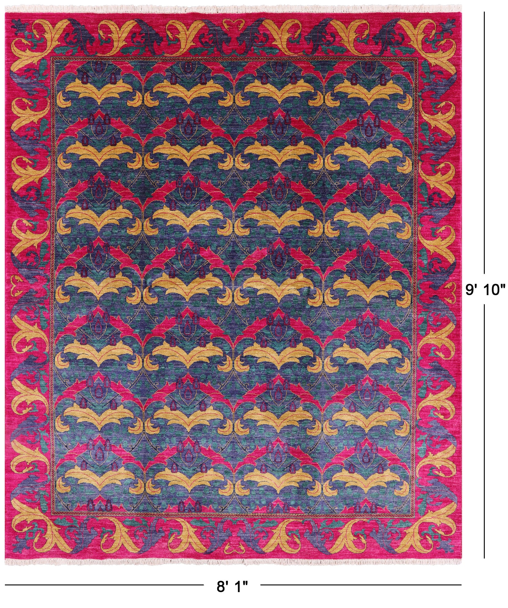 Blue William Morris Hand Knotted Area Rug - 8' 1" X 9' 10"