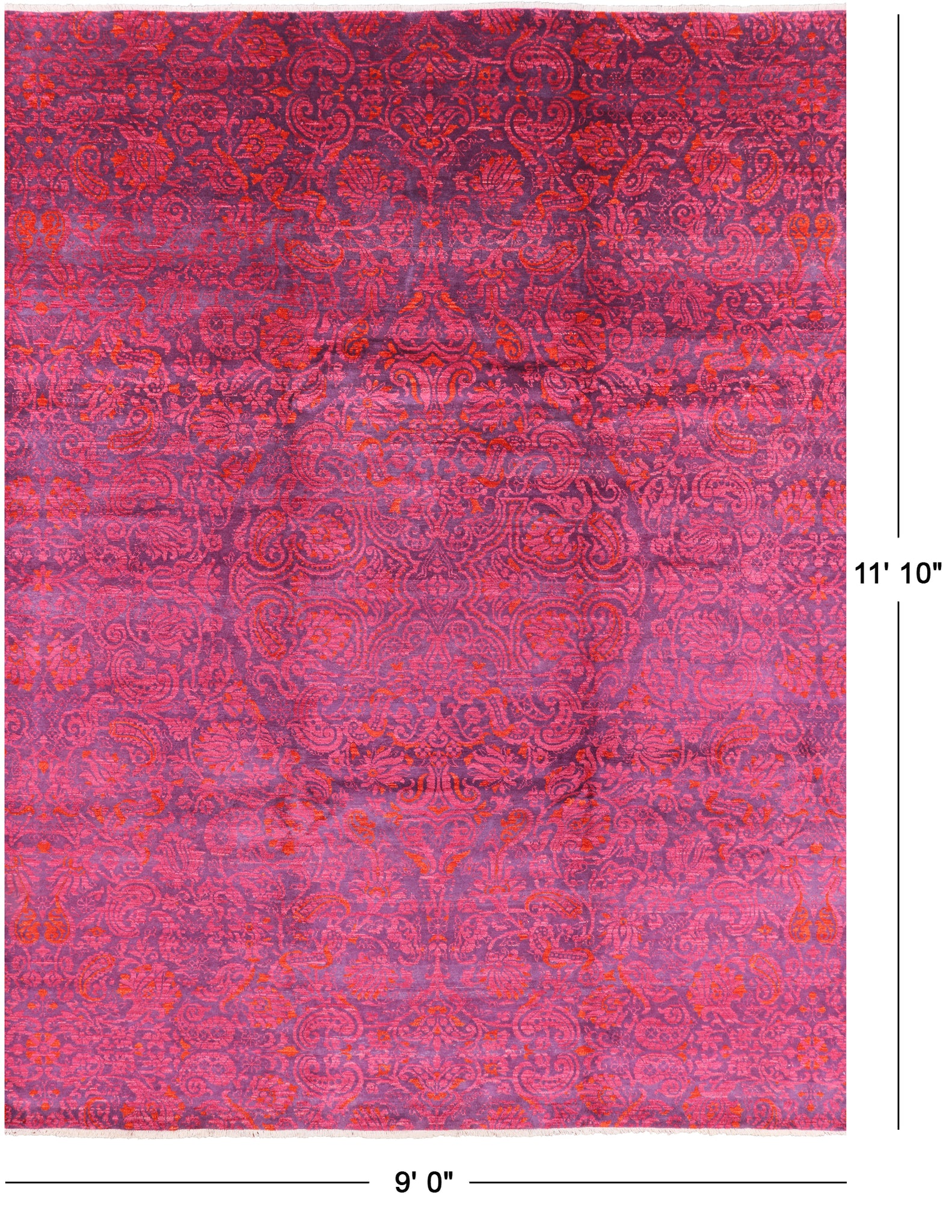 Purple William Morris Hand Knotted Wool Area Rug - 9' 0" X 11' 10"