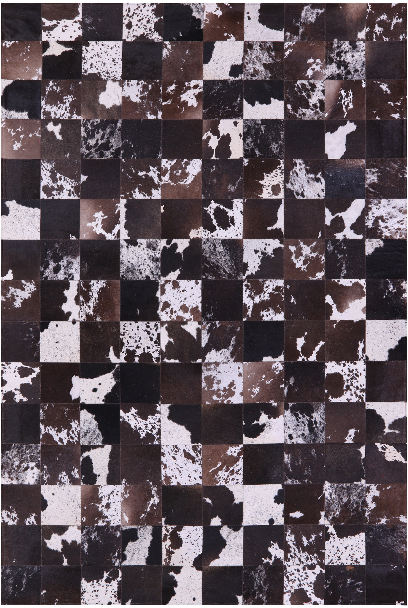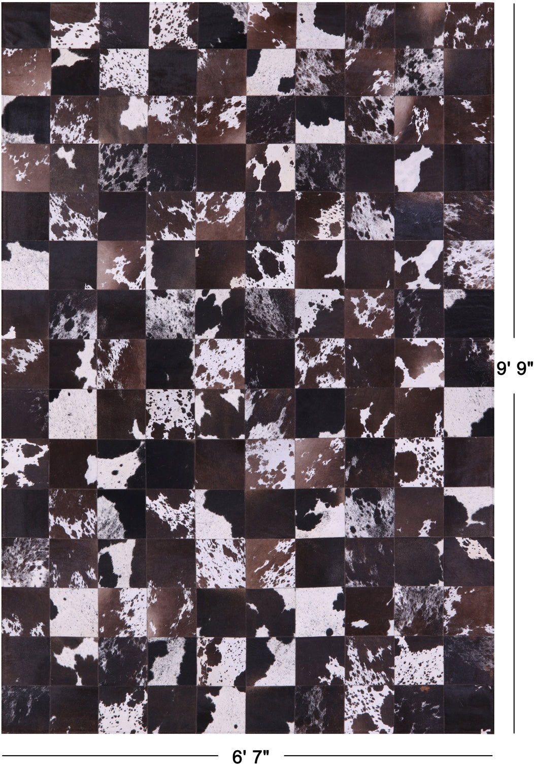 Black & Brown Salt & Pepper Natural Cowhide Hand Stitched Patchwork Rug - 6' 7" X 9' 9"