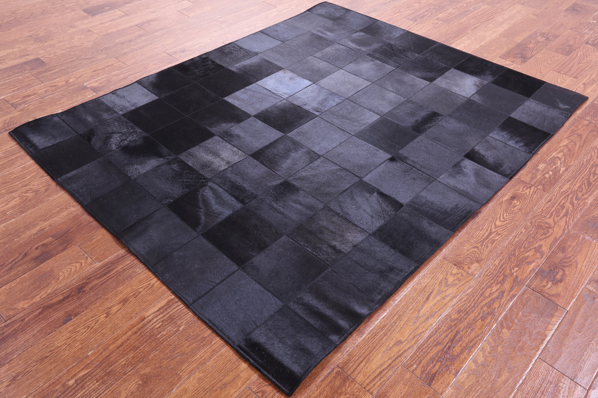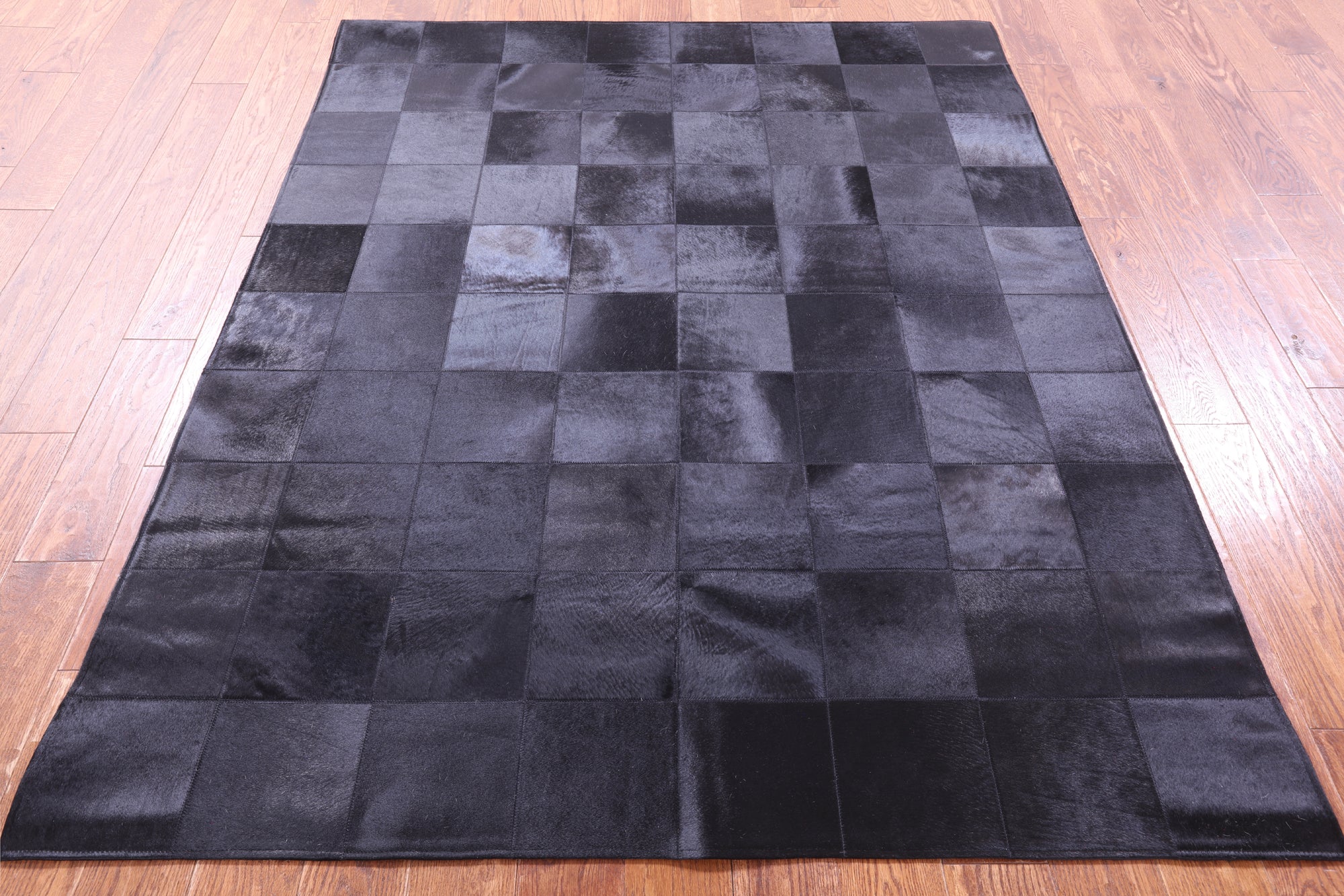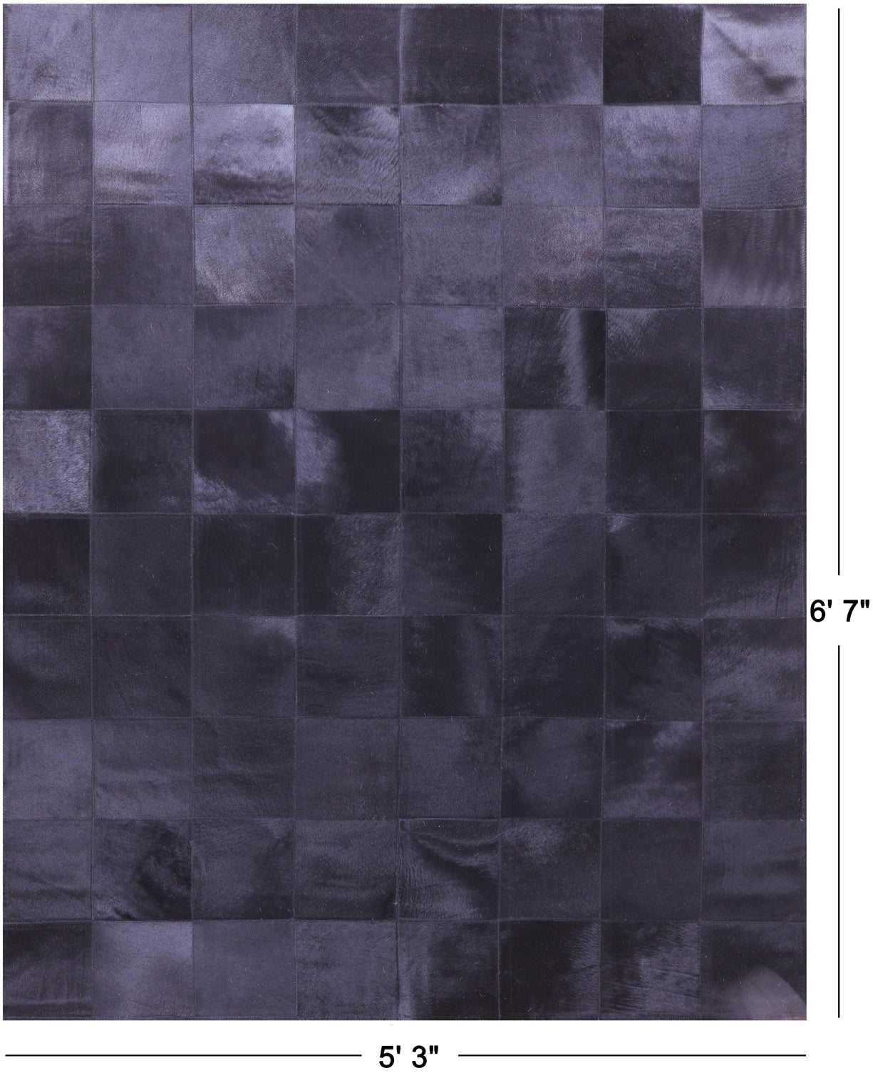 Black Natural Cowhide Hand Stitched Patchwork Rug - 5' 3" X 6' 7"