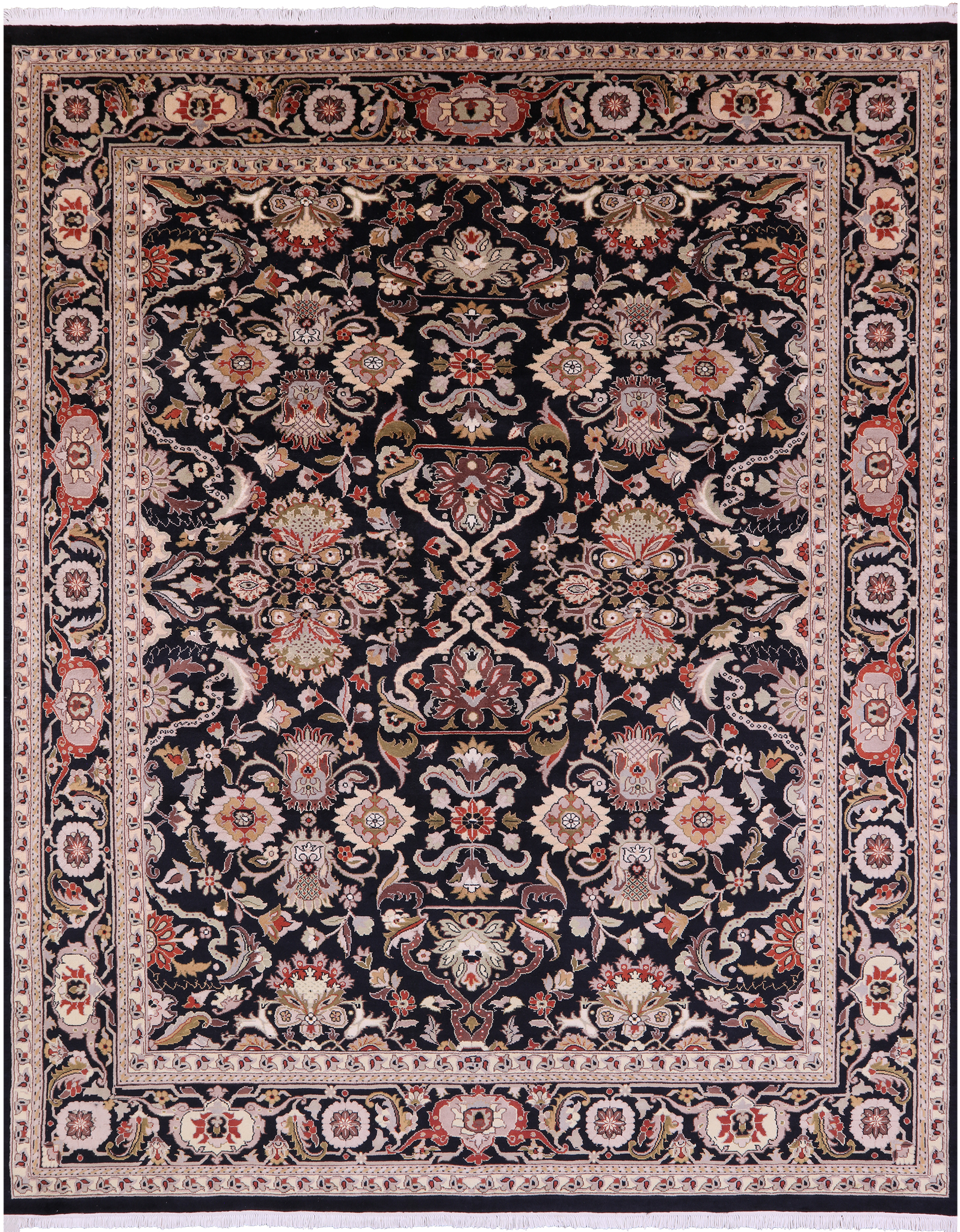 Black Persian Tabriz Handmade Wool Rug - 8' 2" X 10' 0"