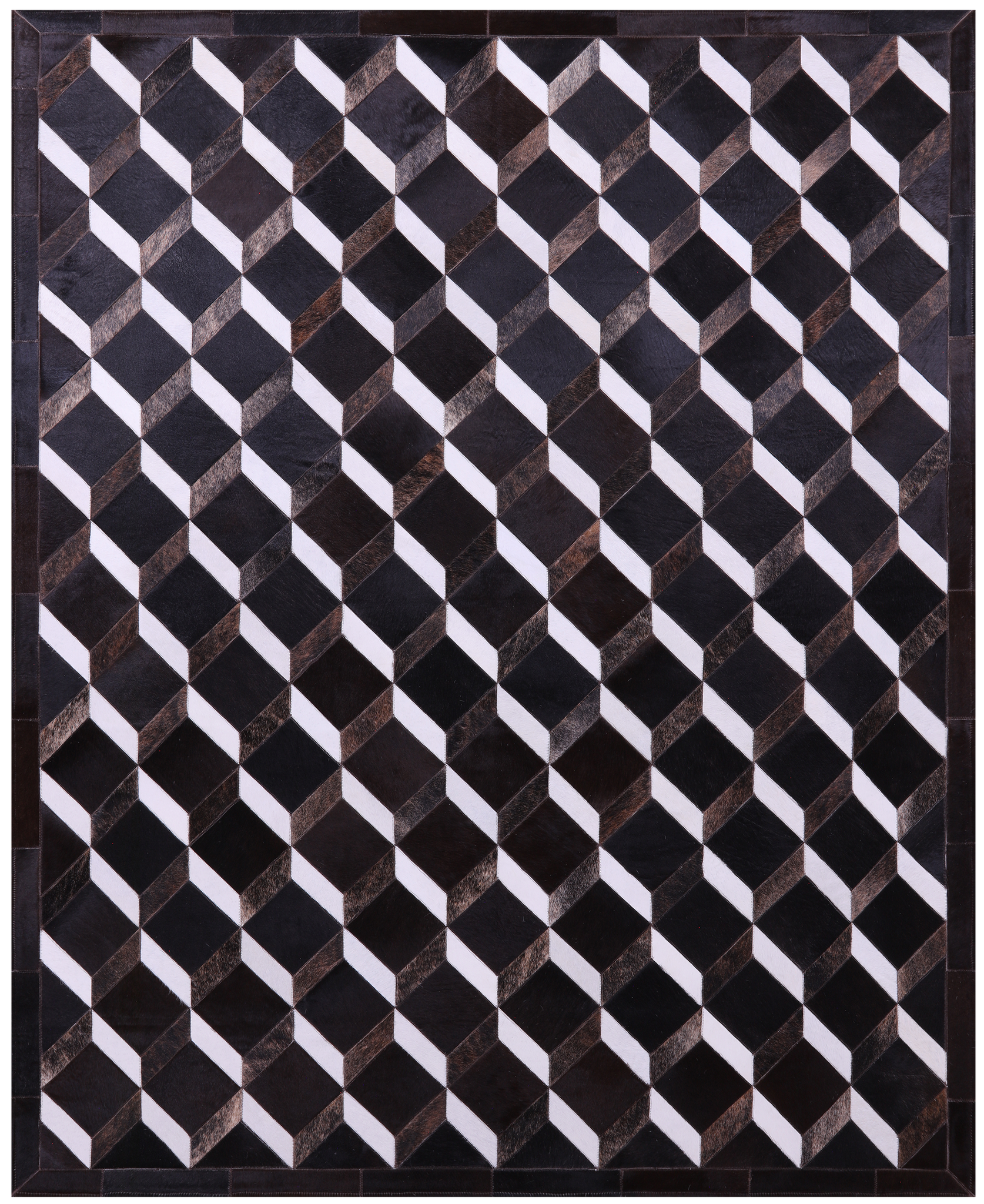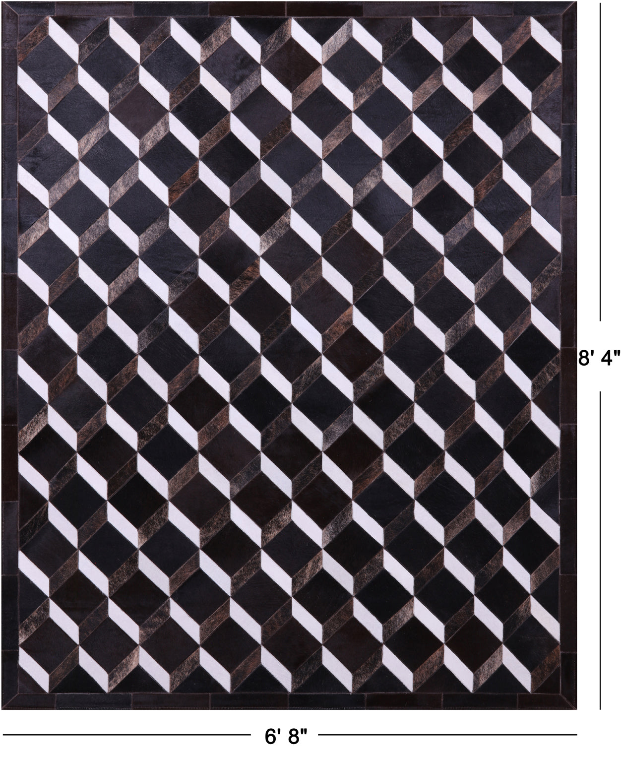 Black & White Natural Brown Cowhide Hand Stitched Patchwork Rug - 6' 8" X 8' 4"