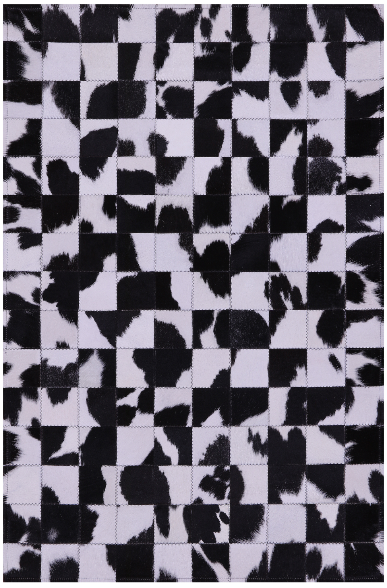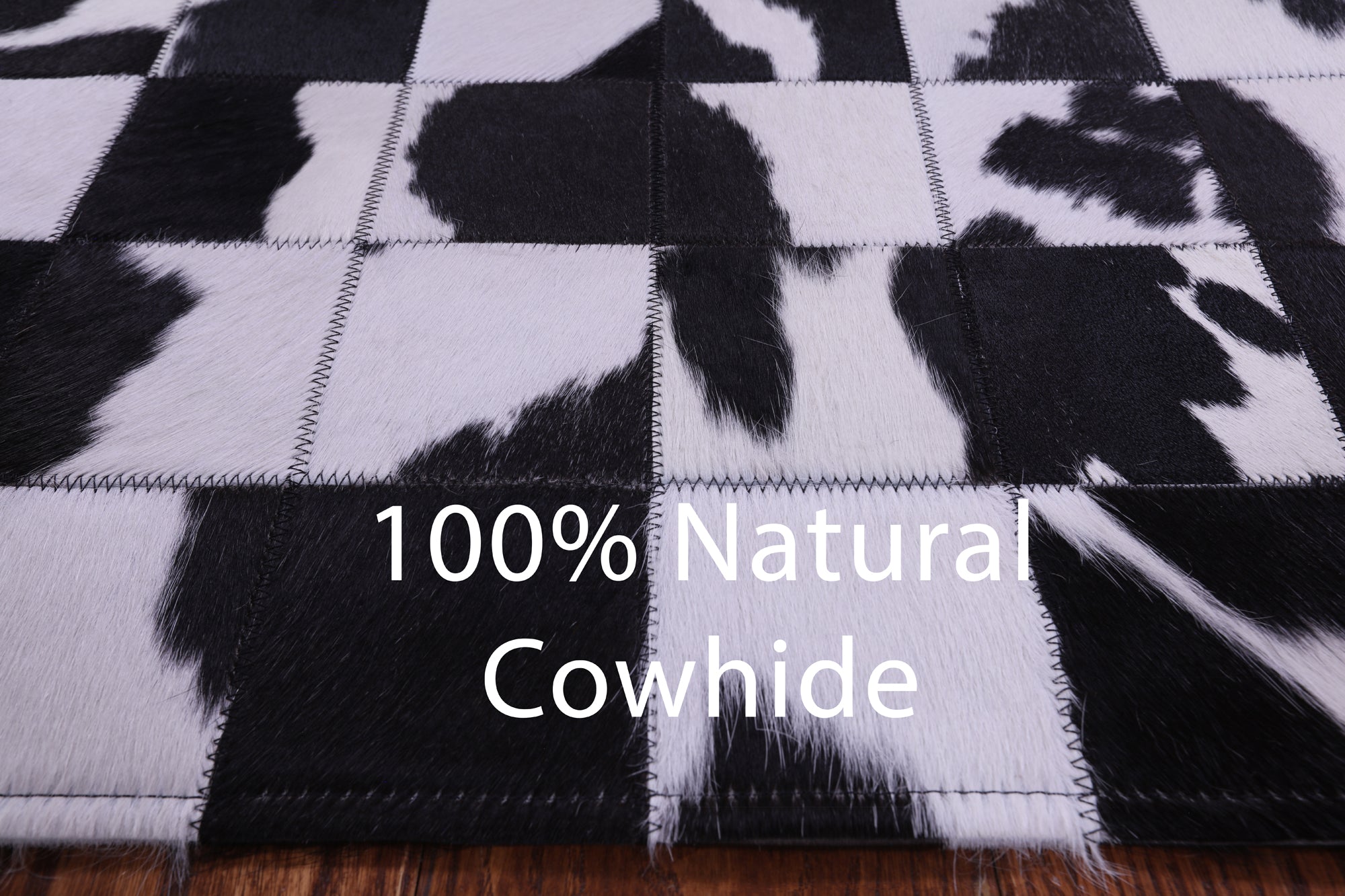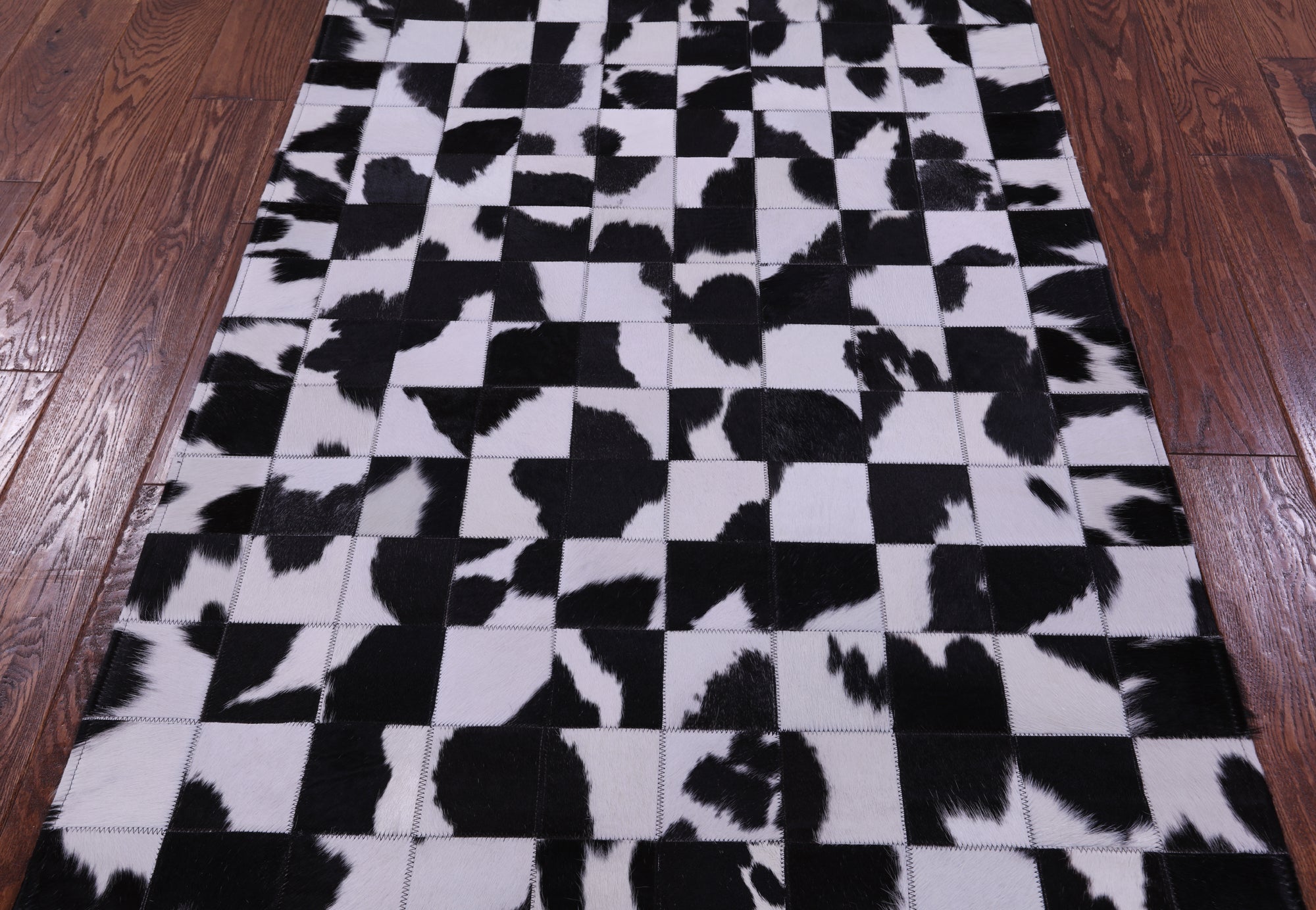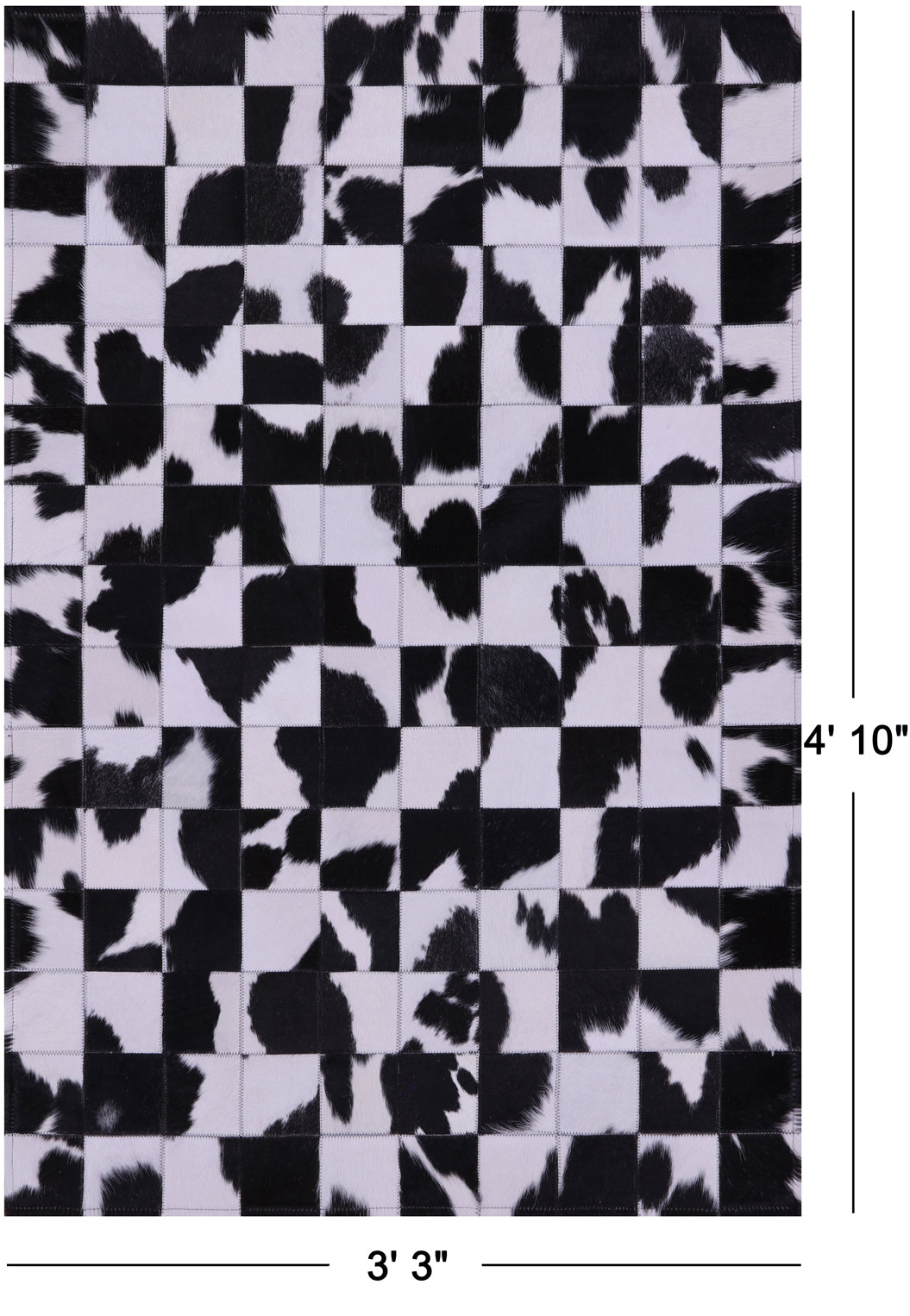 Black & White Natural Cowhide Hand Stitched Patchwork Rug - 3' 3" X 4' 10"