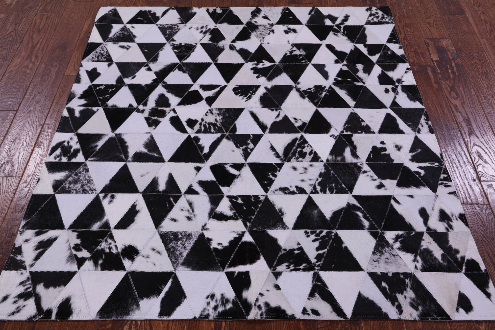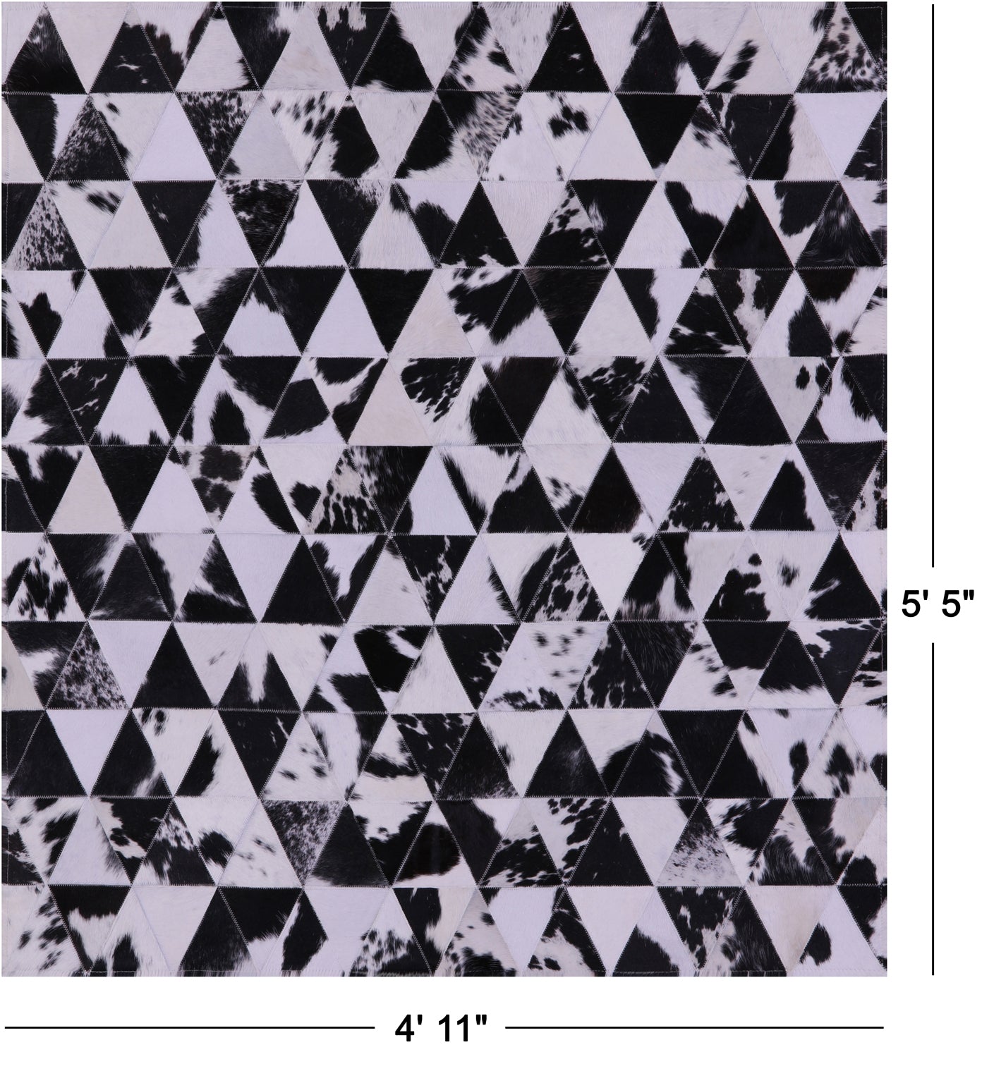 Black & White Natural Cowhide Hand Stitched Patchwork Rug - 4' 11" X 5' 5"