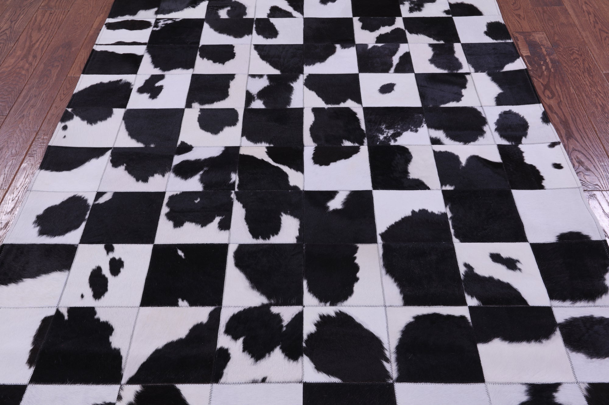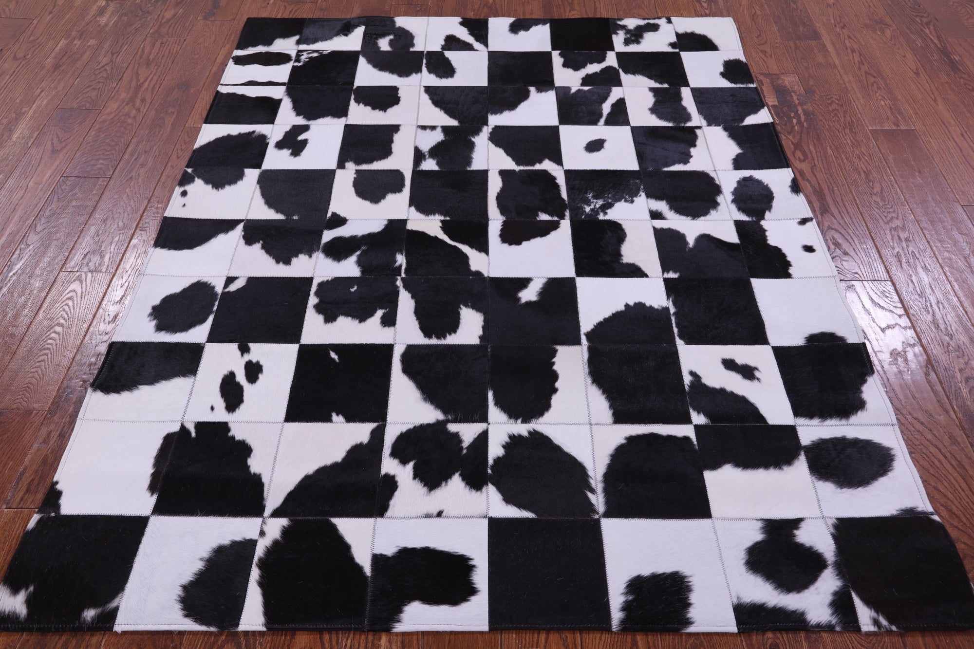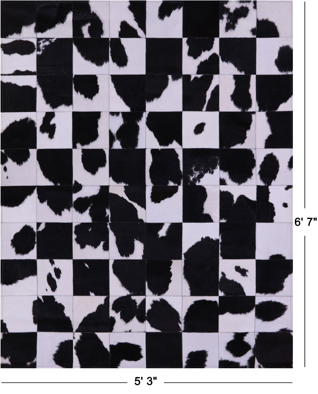 Black & White Natural Cowhide Hand Stitched Patchwork Rug - 5' 3" X 6' 7"