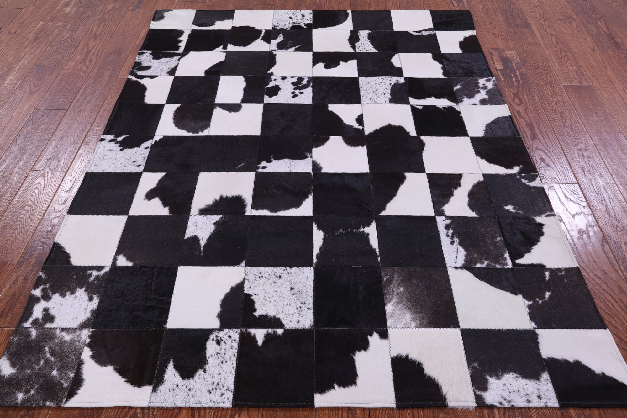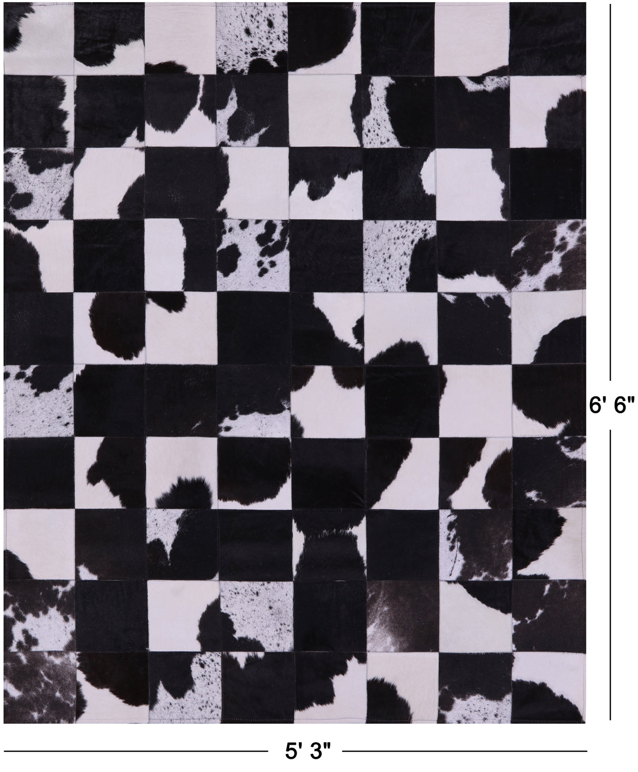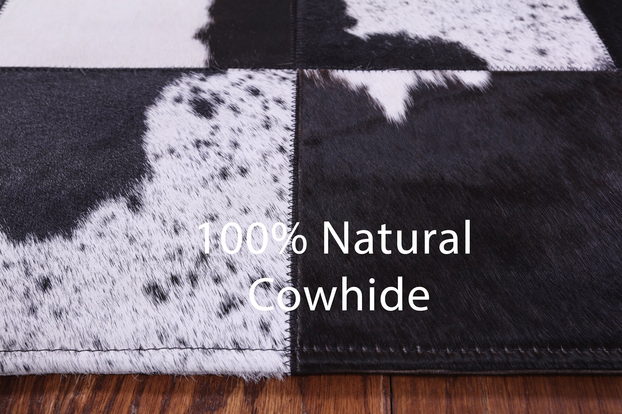 Black & White Salt & Pepper Natural Cowhide Hand Stitched Patchwork Rug - 5' 3" X 6' 6"