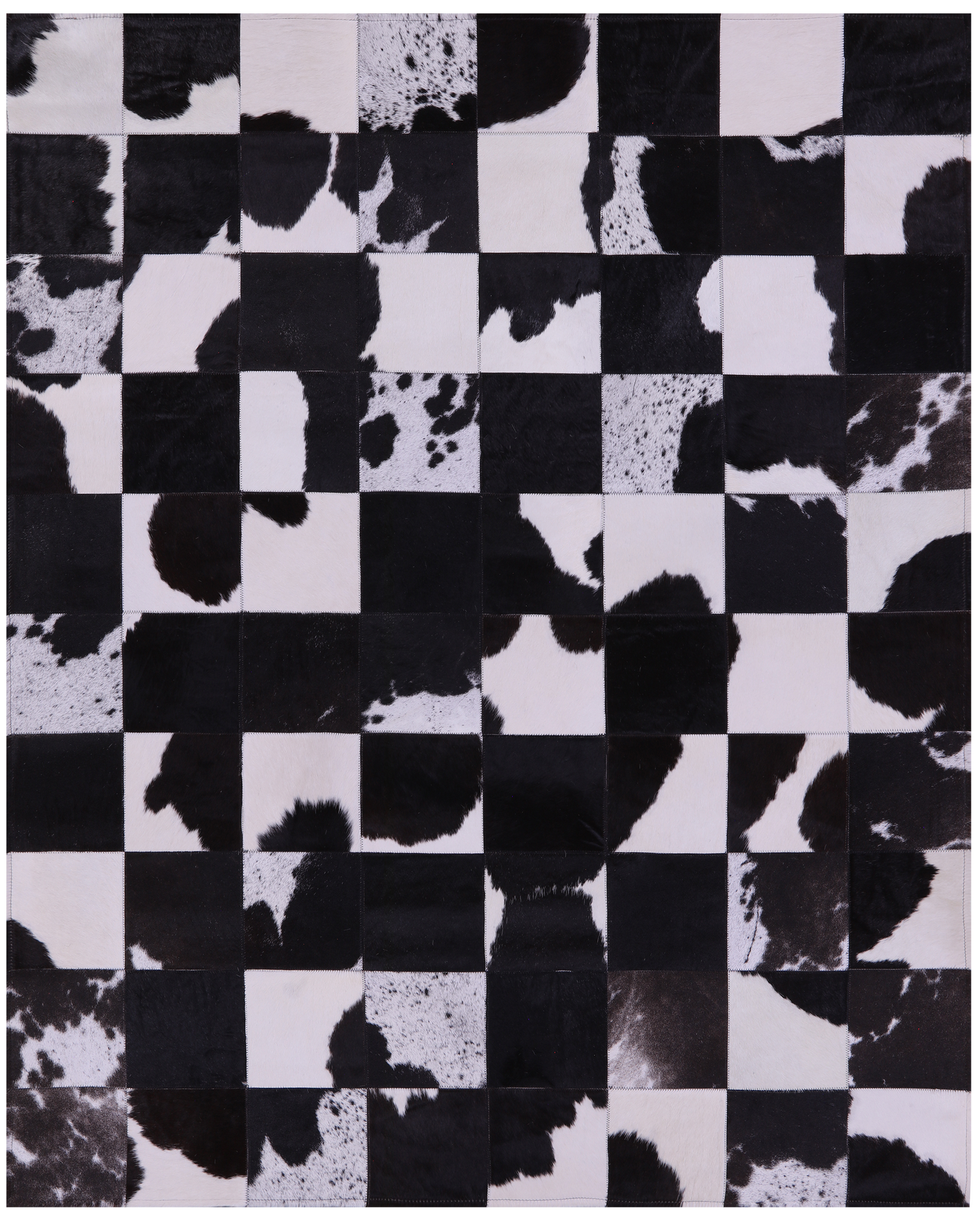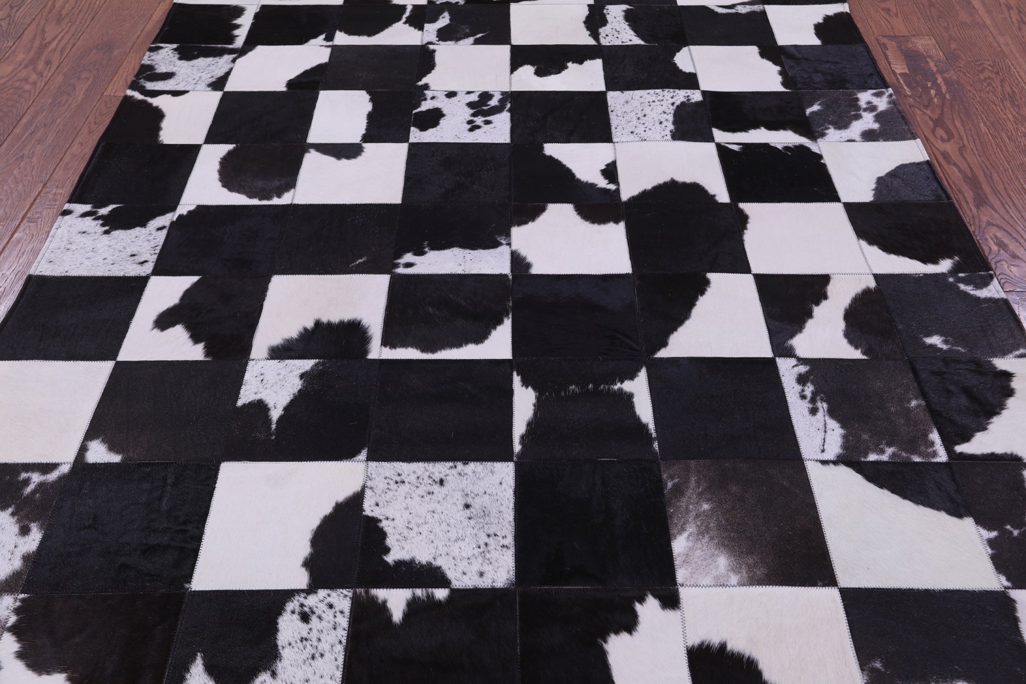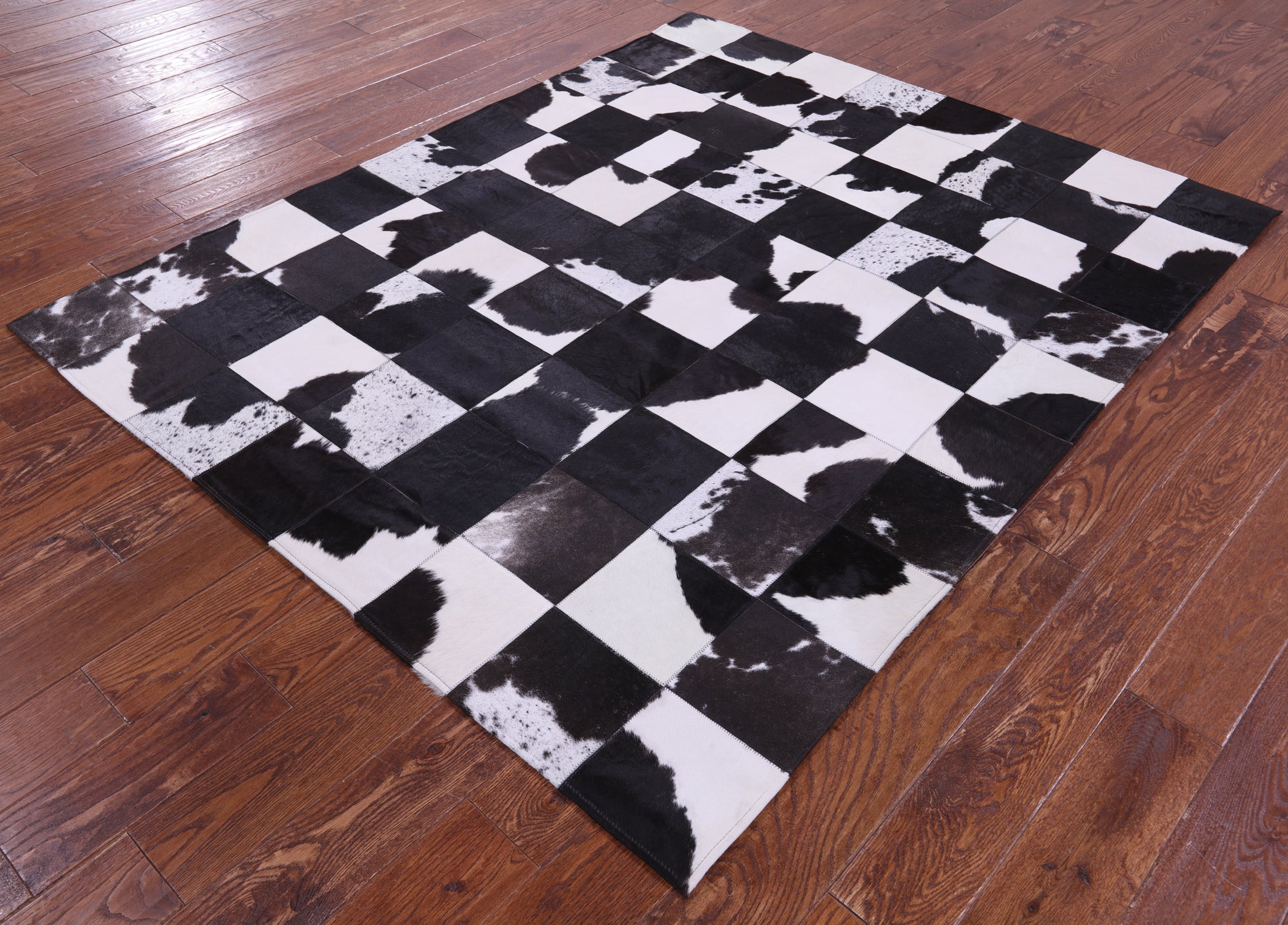 Black & White Salt & Pepper Natural Cowhide Hand Stitched Patchwork Rug - 5' 3" X 6' 6"