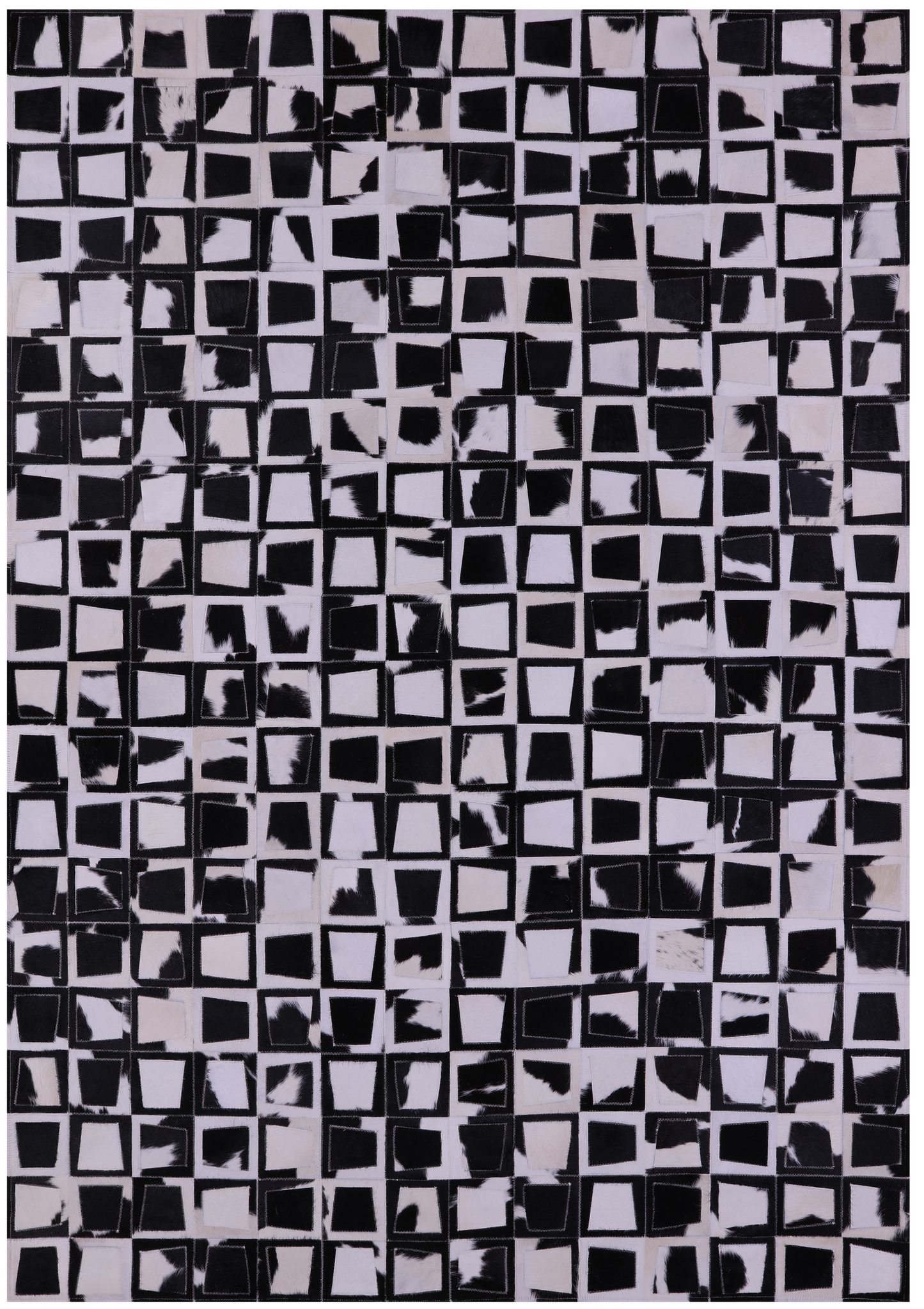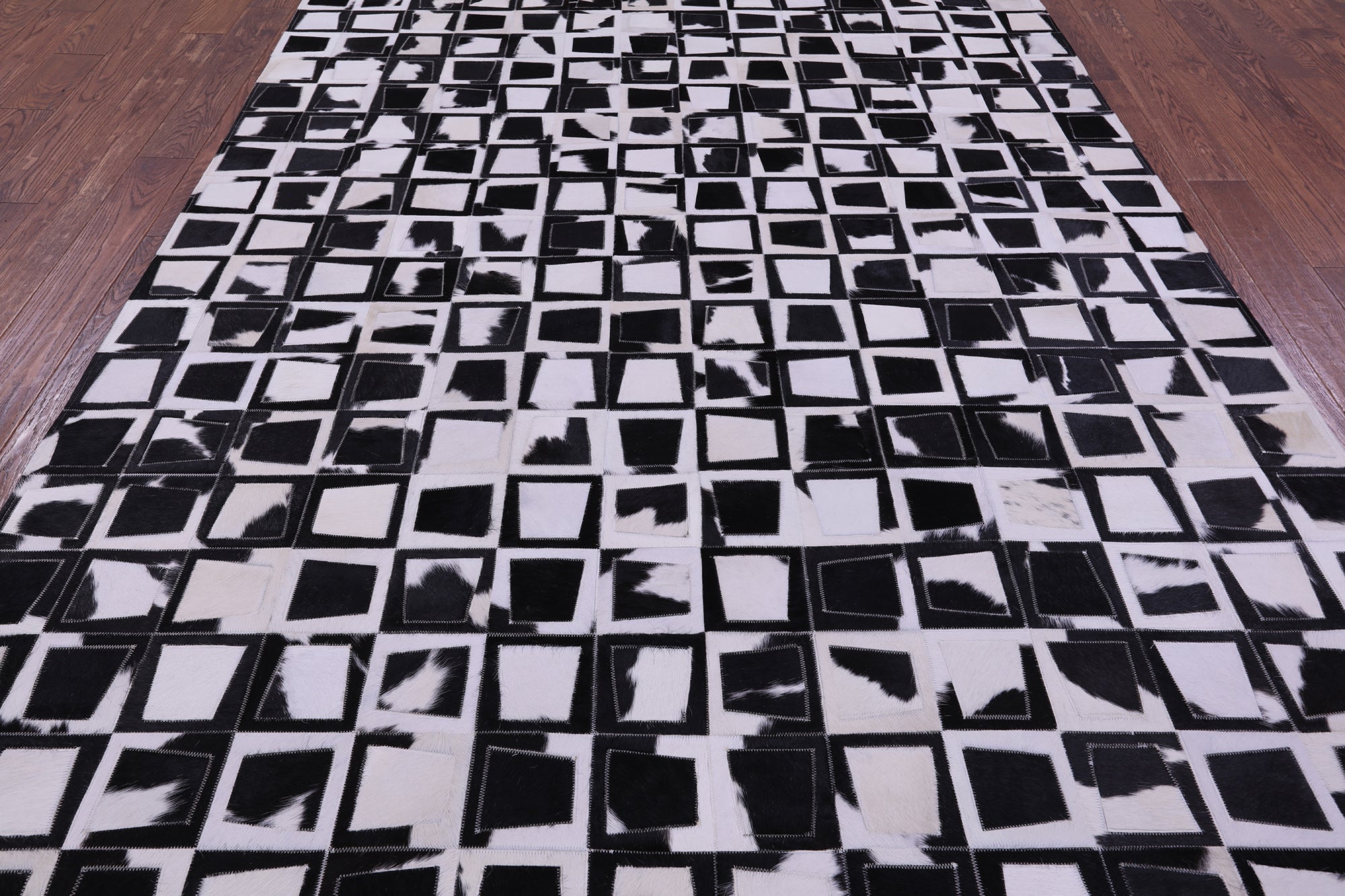 Black & White Wabi-Sabi Natural Cowhide Hand Stitched Patchwork Rug - 6' 10" X 9' 9"