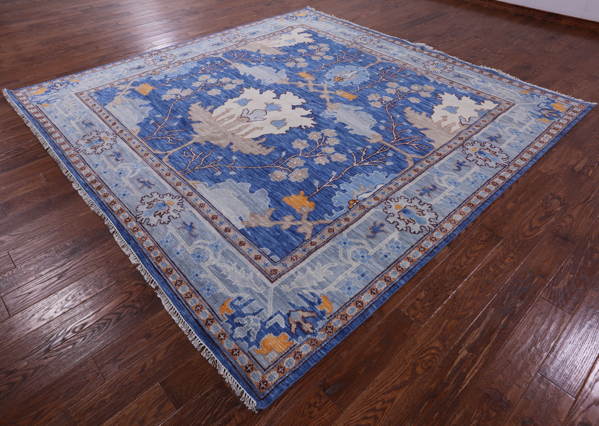 Blue Square Turkish Oushak Handmade Wool Rug - 10' 1" X 10' 1"