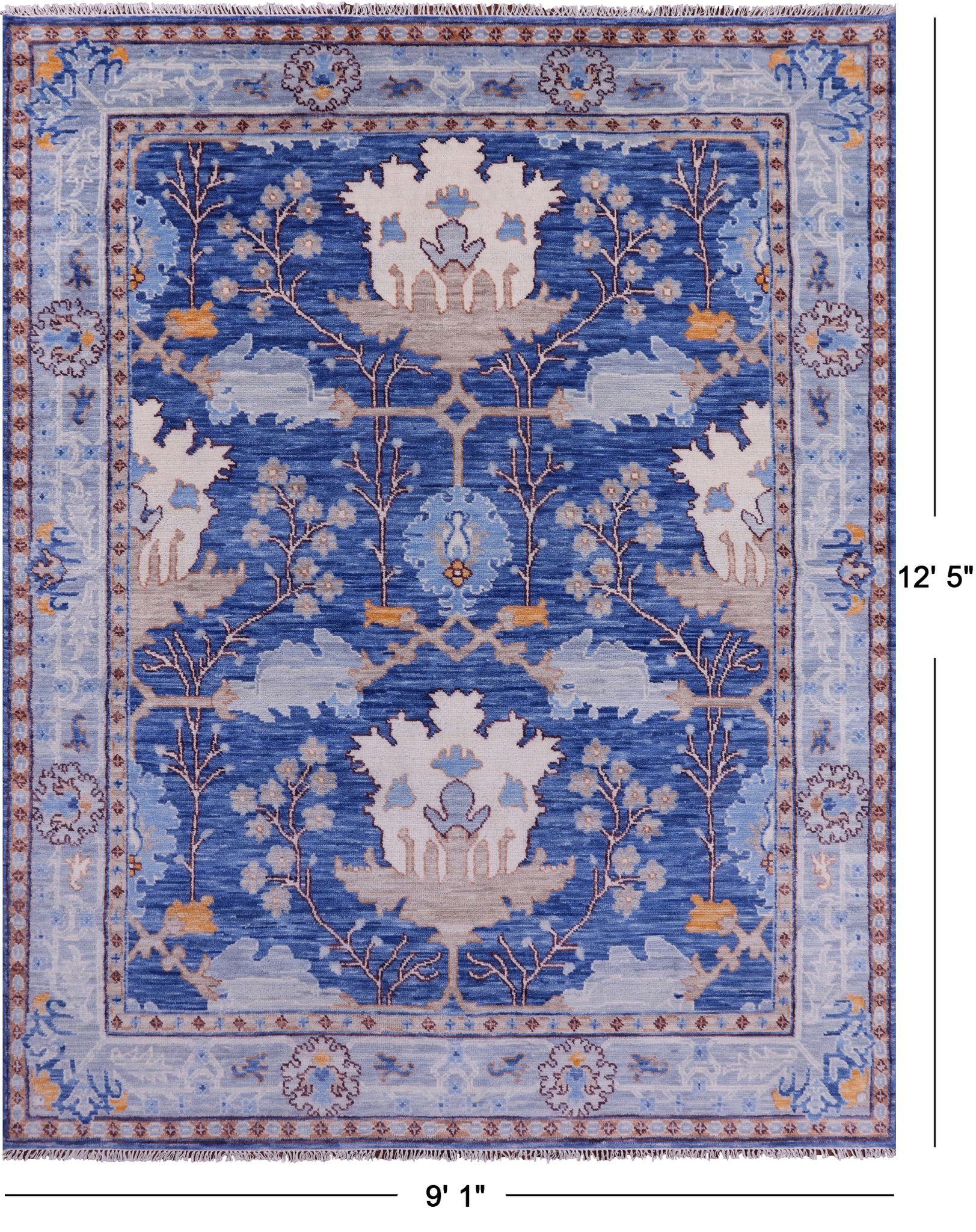 Blue Turkish Oushak Hand Knotted Wool Rug - 9' 1" X 12' 5"