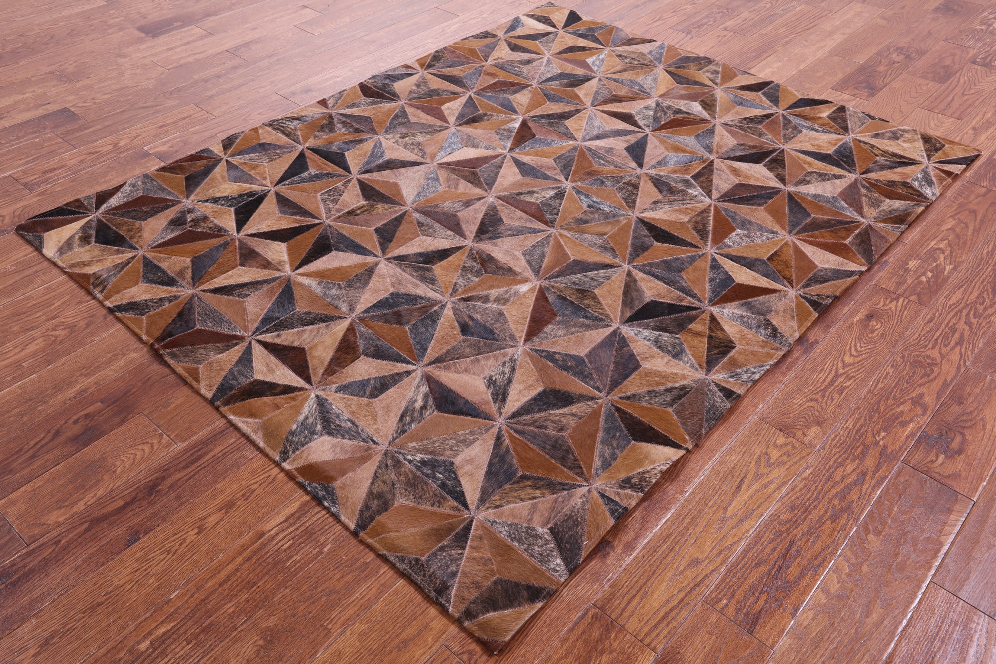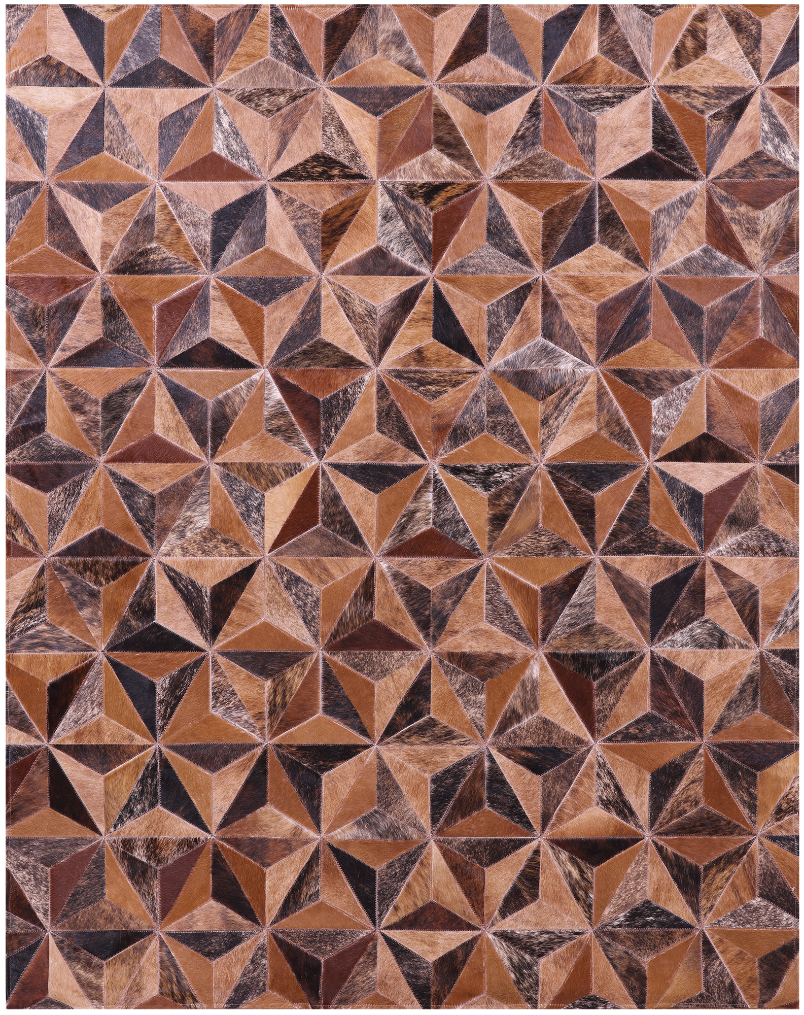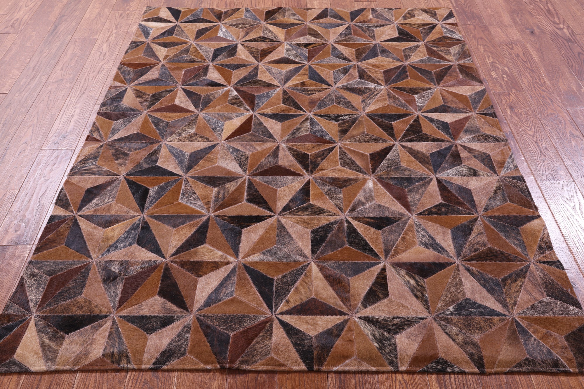Brindle Brown Natural Cowhide Hand Stitched Patchwork Rug - 5' 3" X 6' 7"