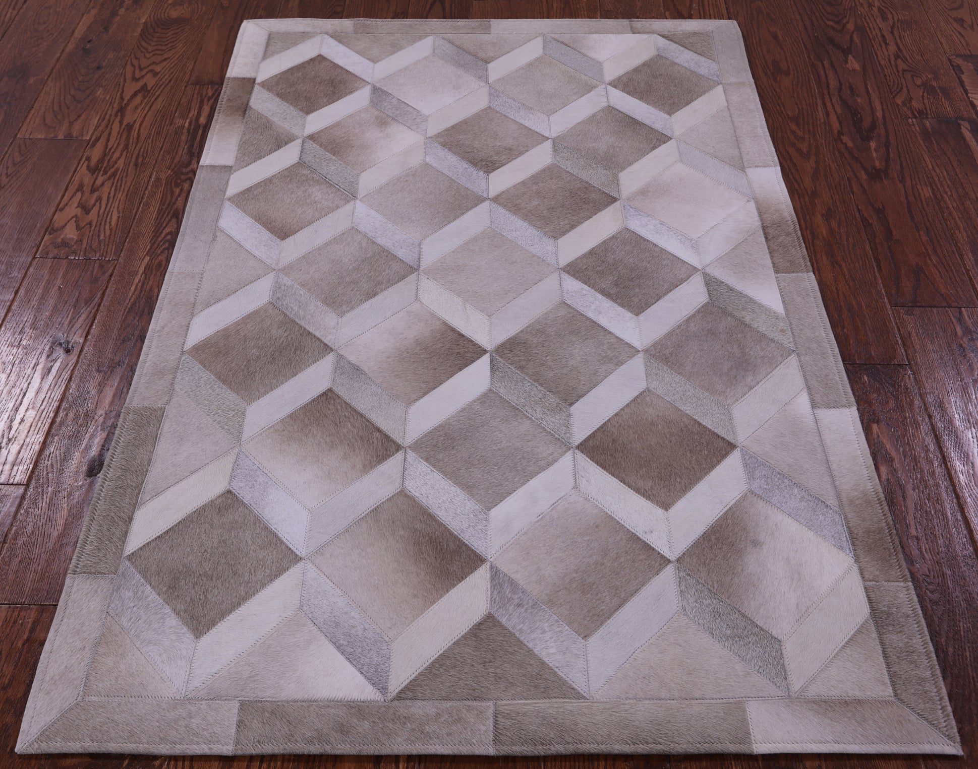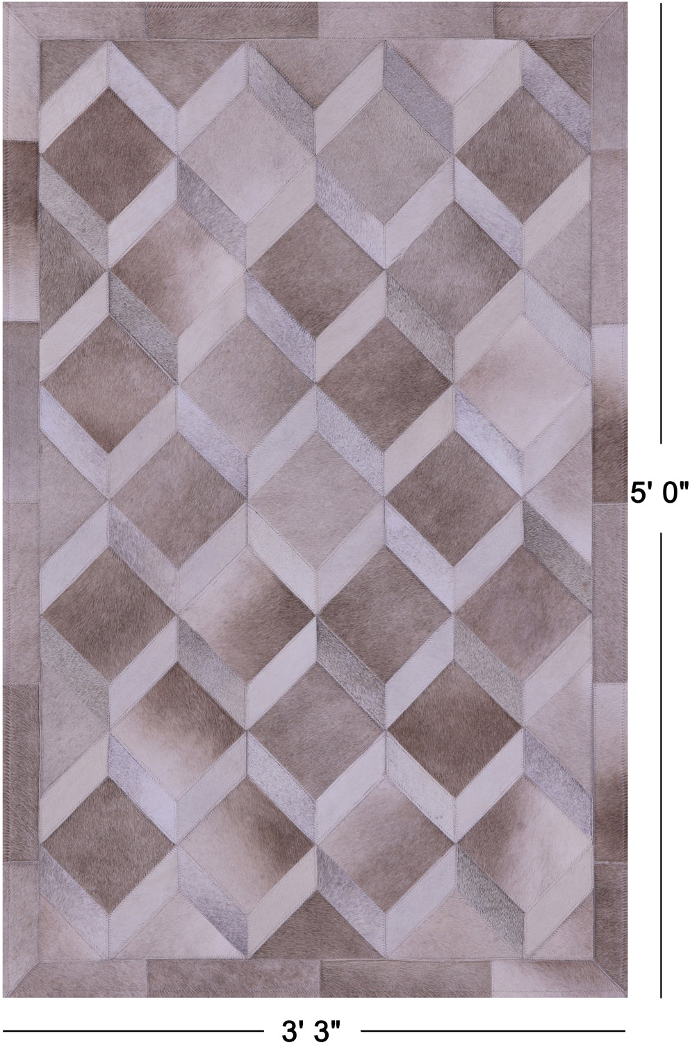 Brown Natural Cowhide Hand Stitched Patchwork Rug - 3' 3" X 5' 0"