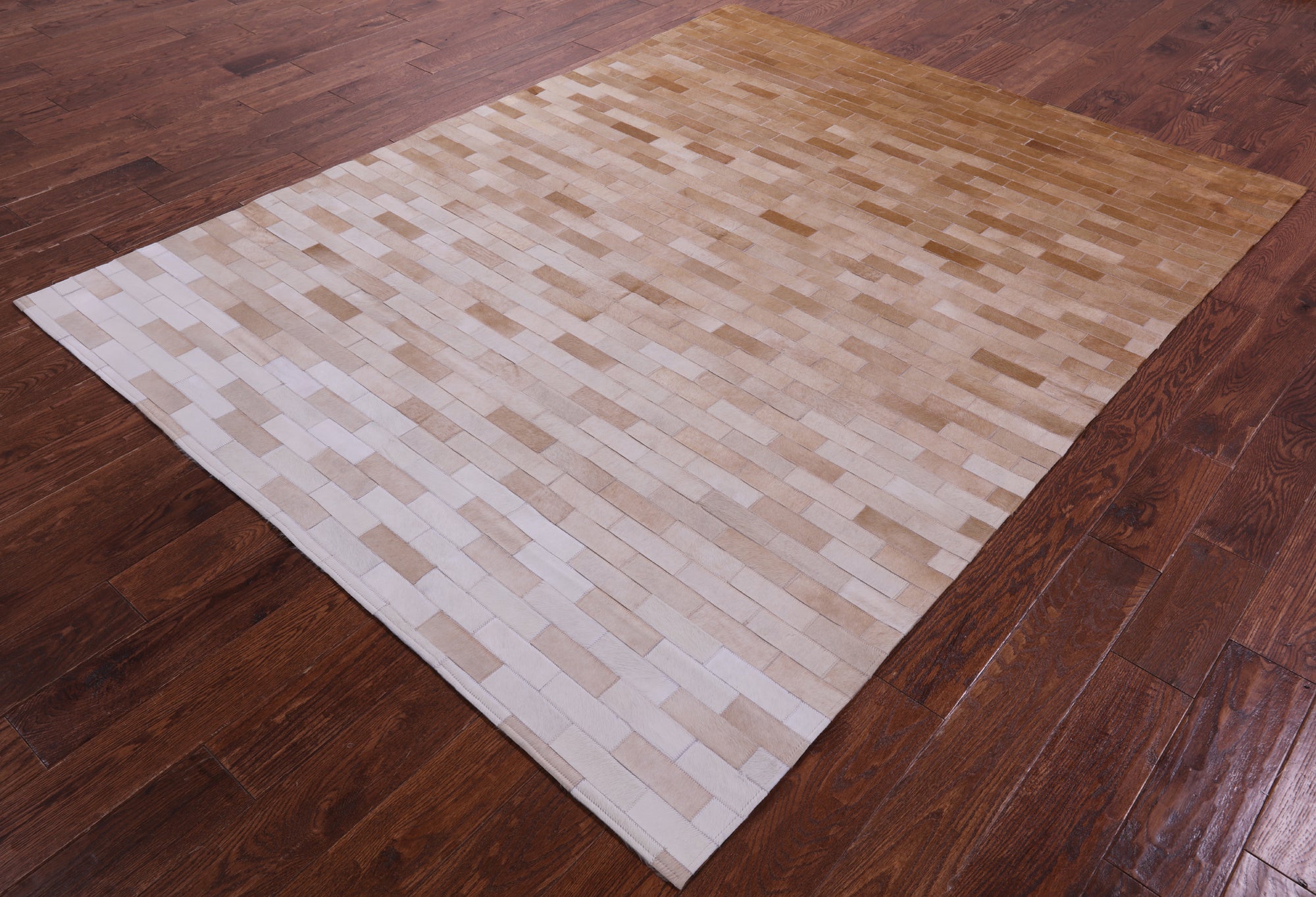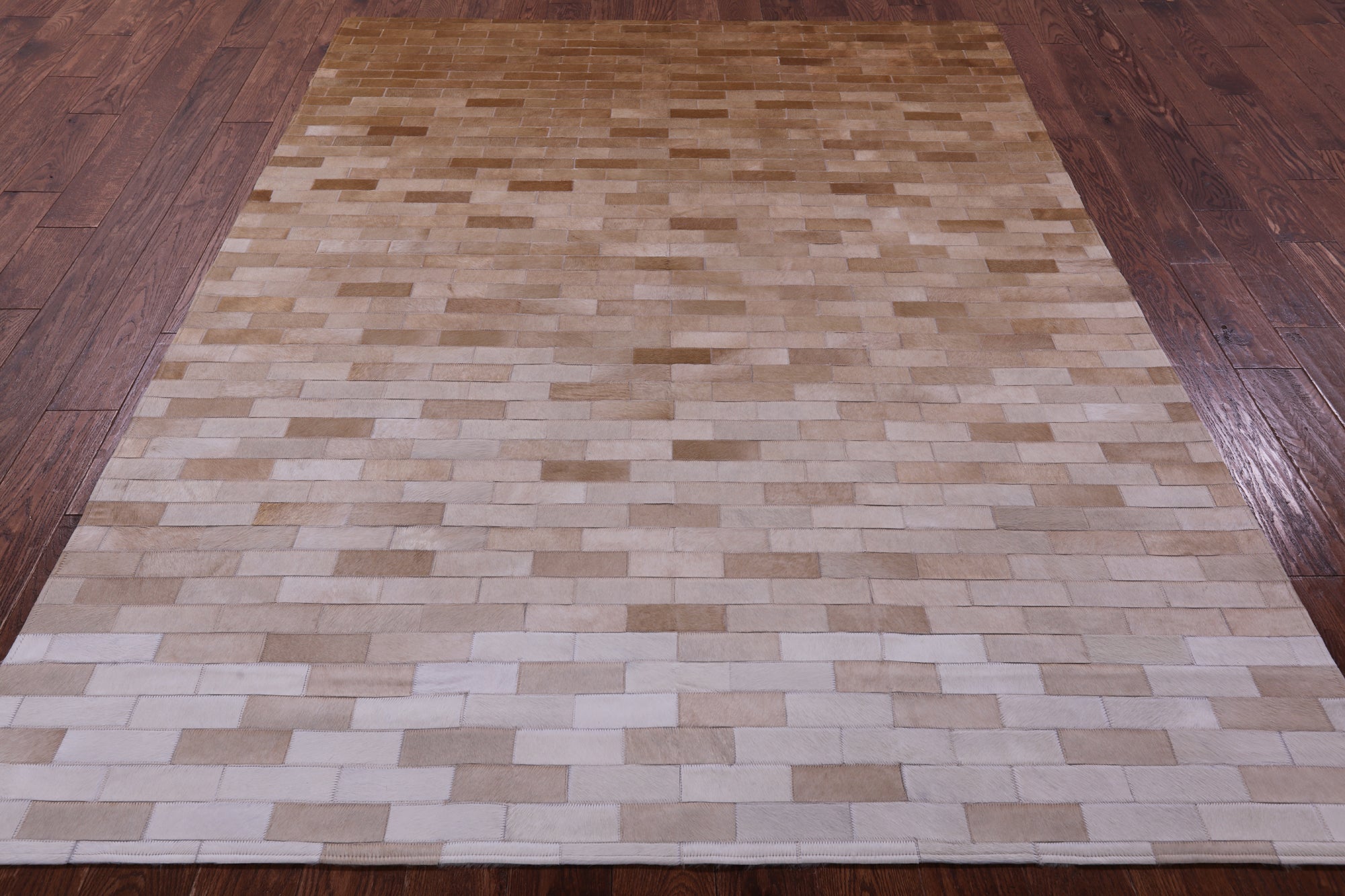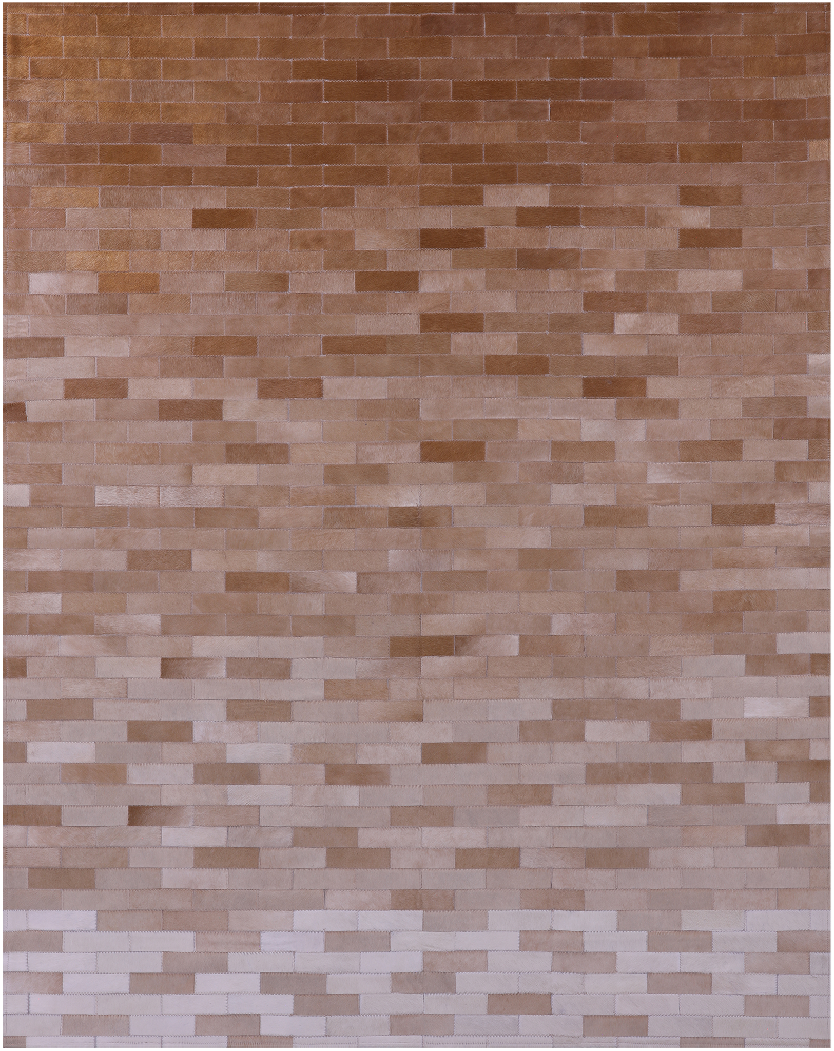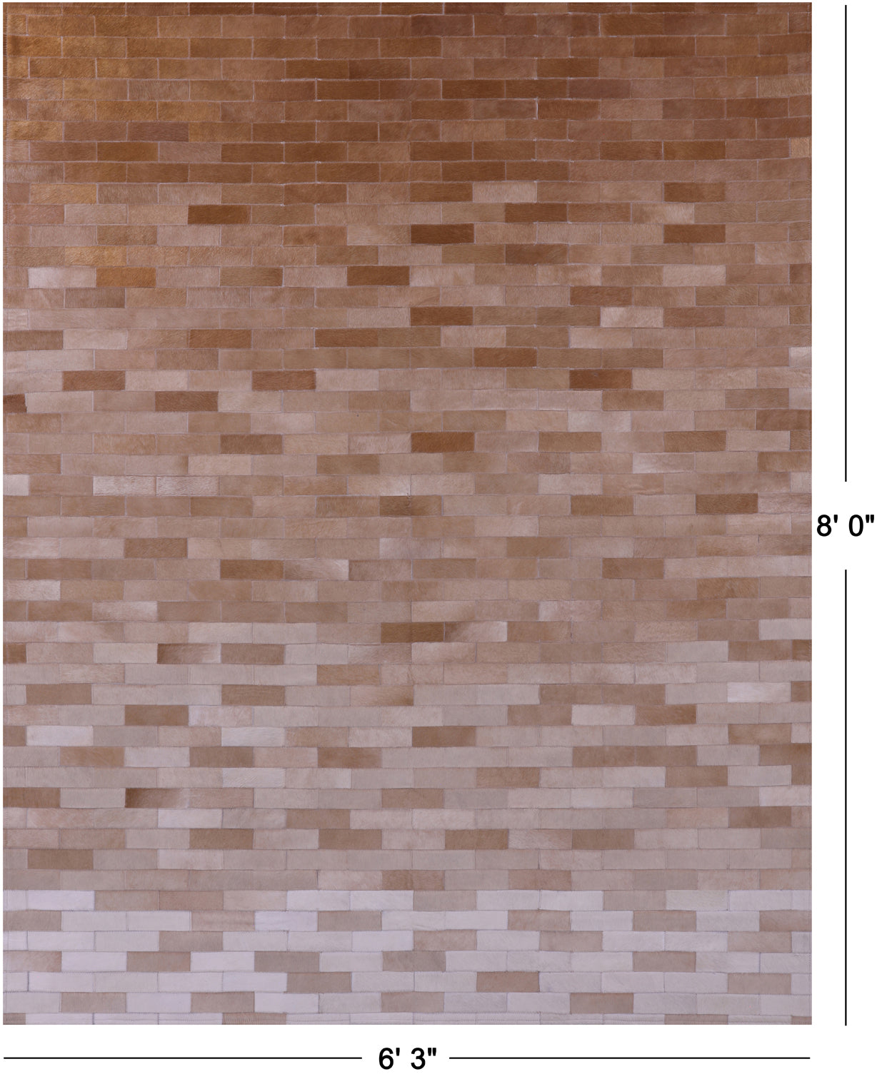 Brown & White Gradient Brickwork Natural Cowhide Hand Stitched Patchwork Rug - 6' 3" X 8' 0"