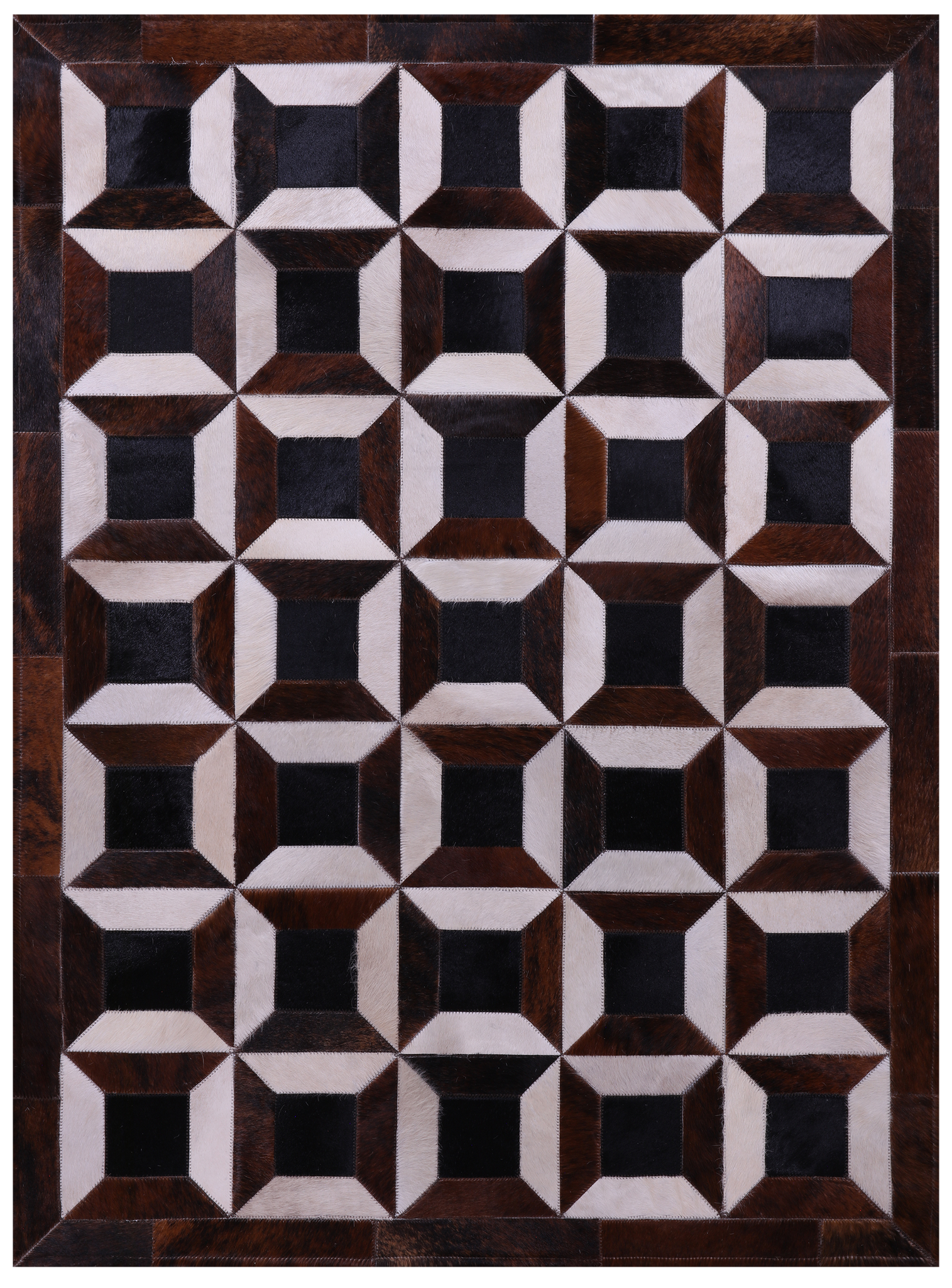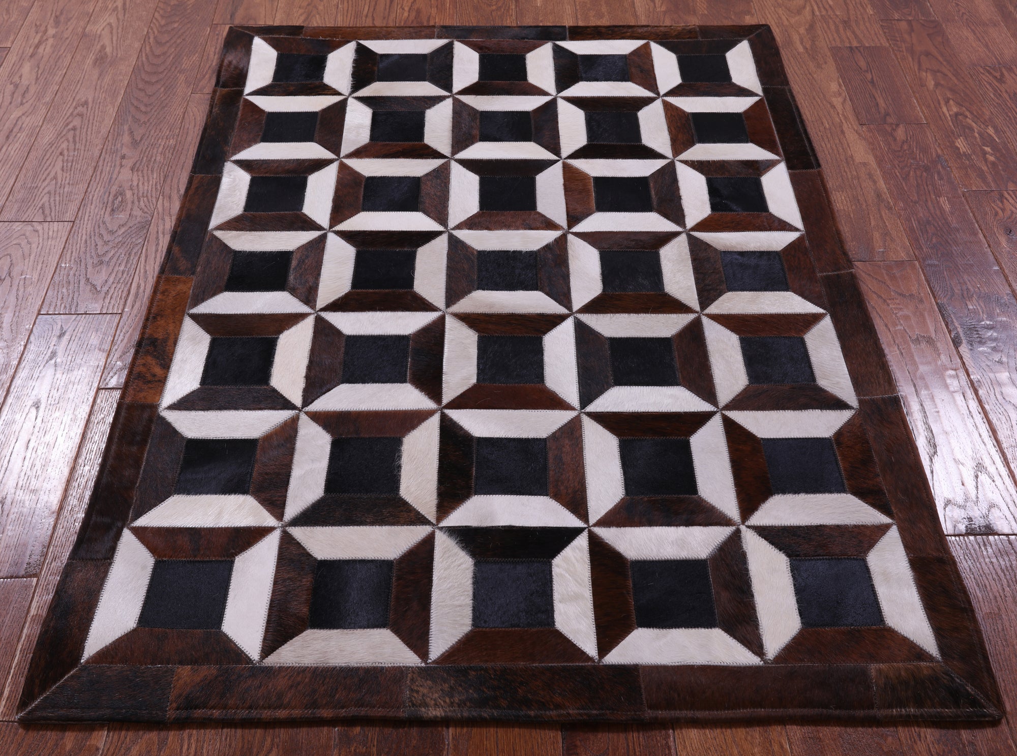 Brown & White Natural Black Cowhide Hand Stitched Patchwork Rug - 3' 8" X 5' 0"