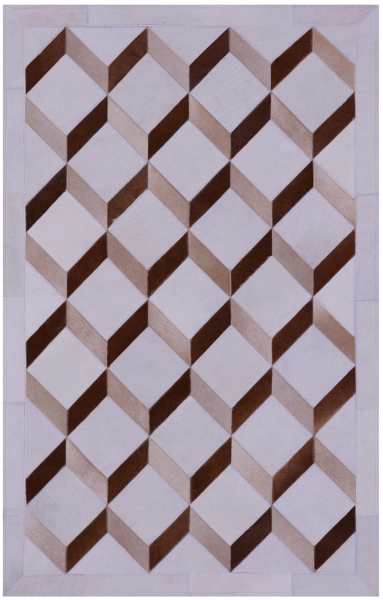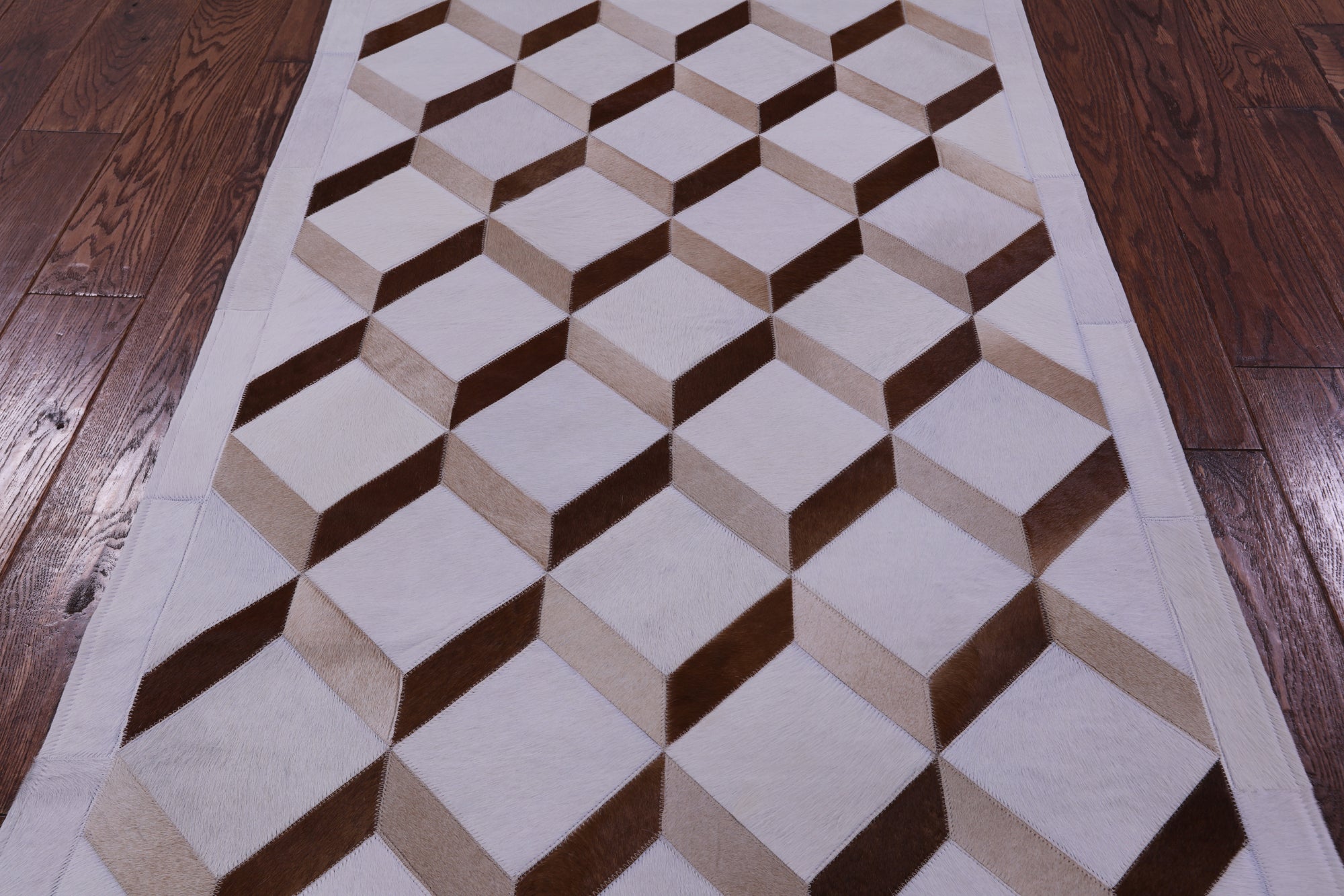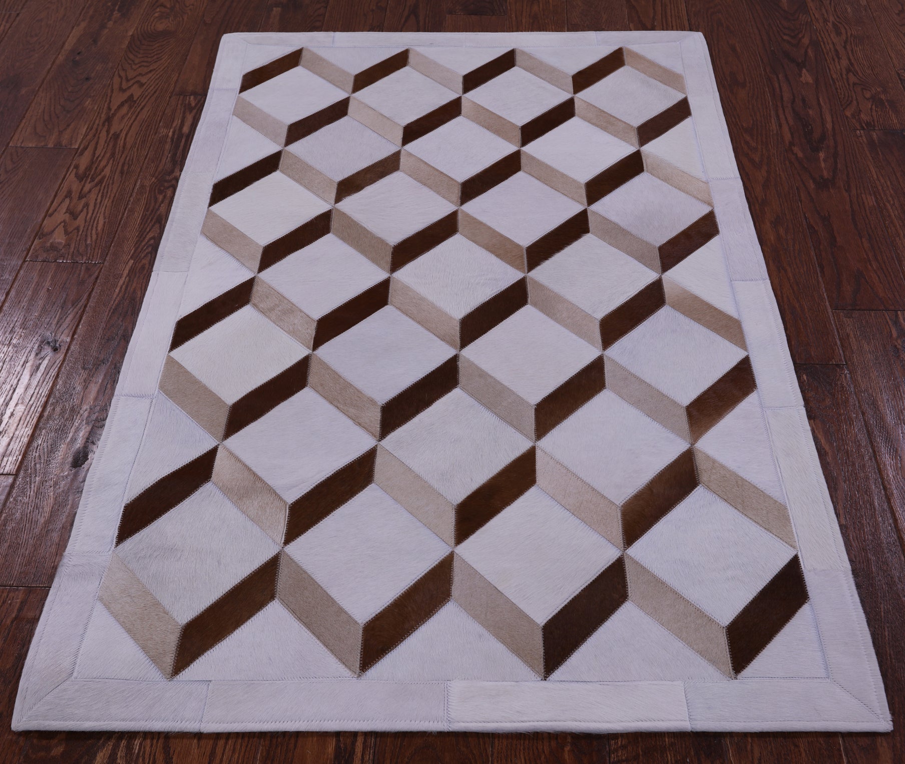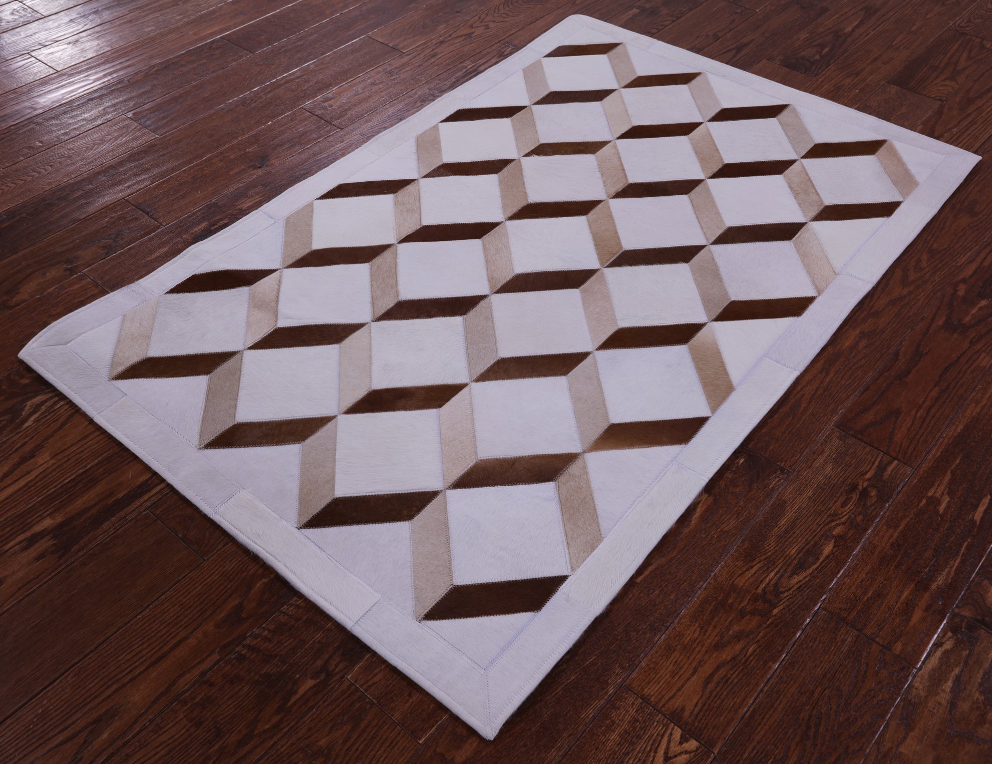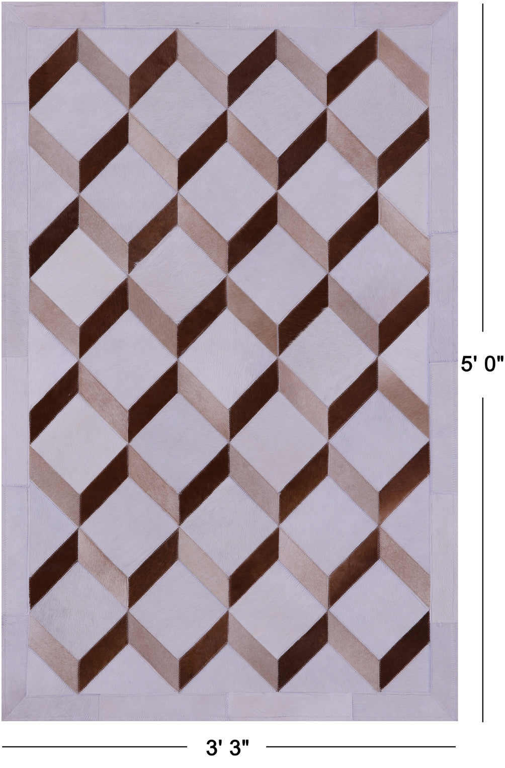 Brown & White Natural Cowhide Hand Stitched Patchwork Rug - 3' 3" X 5' 0"