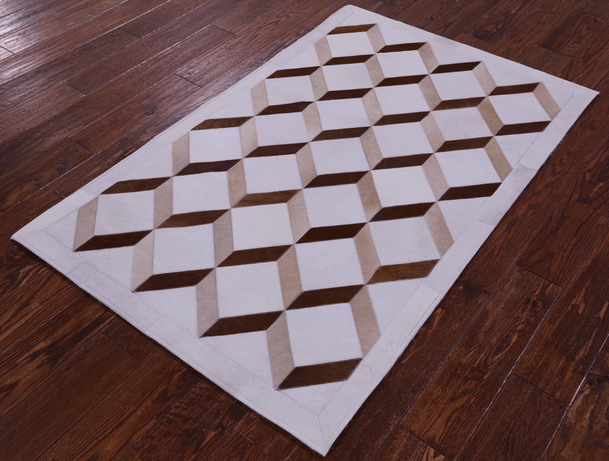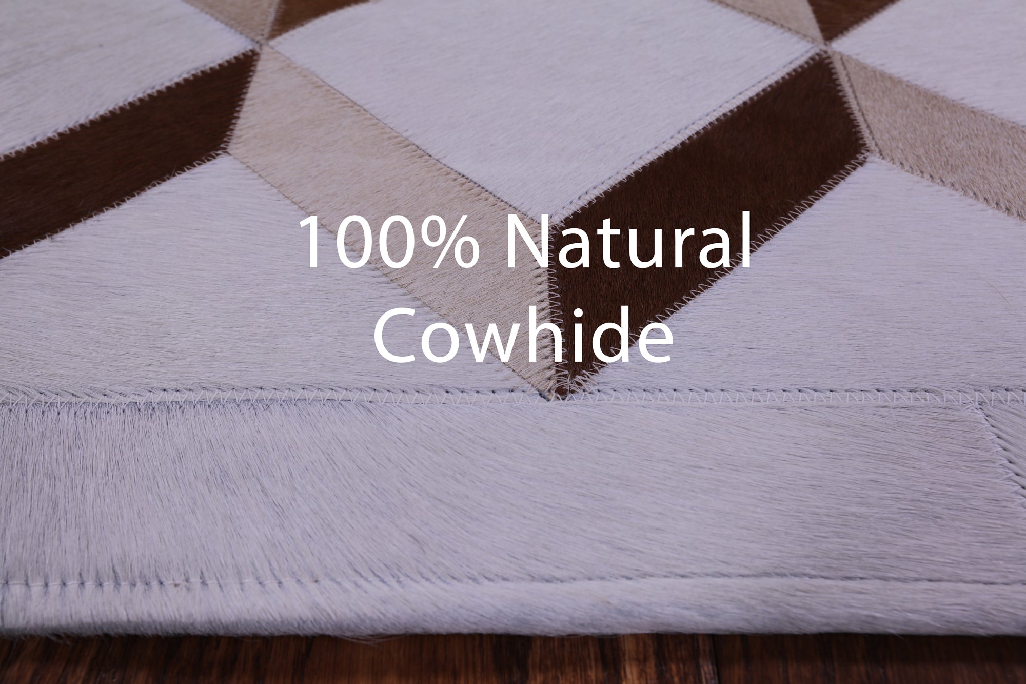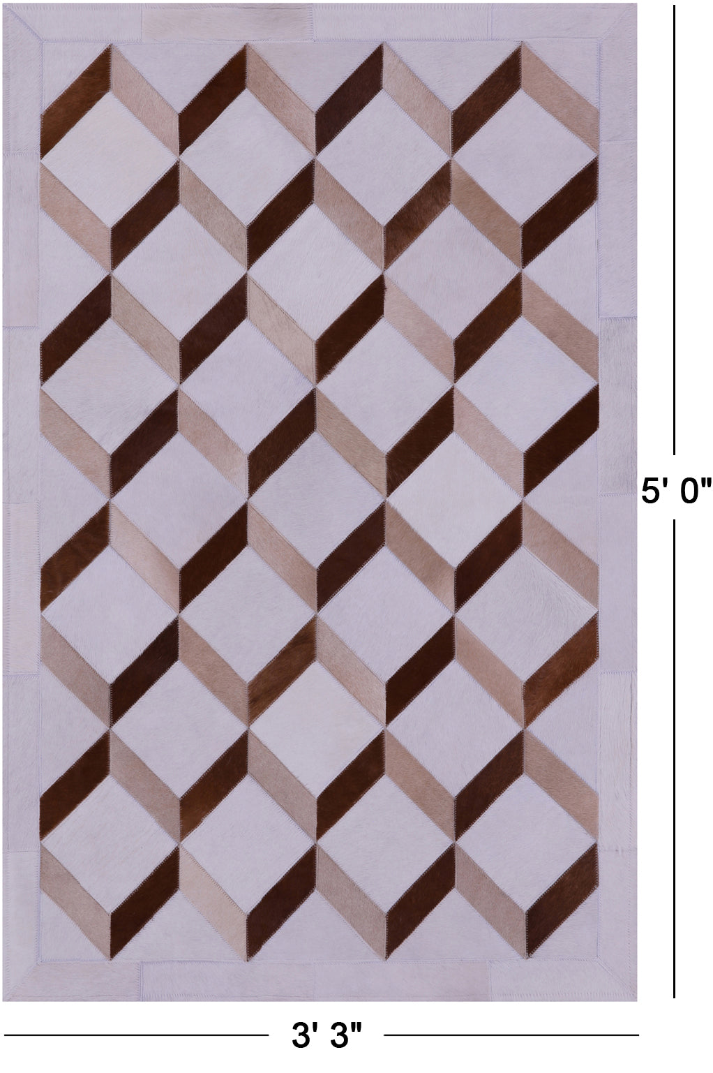 Brown & White Natural Cowhide Hand Stitched Patchwork Rug - 3' 3" X 5' 0"