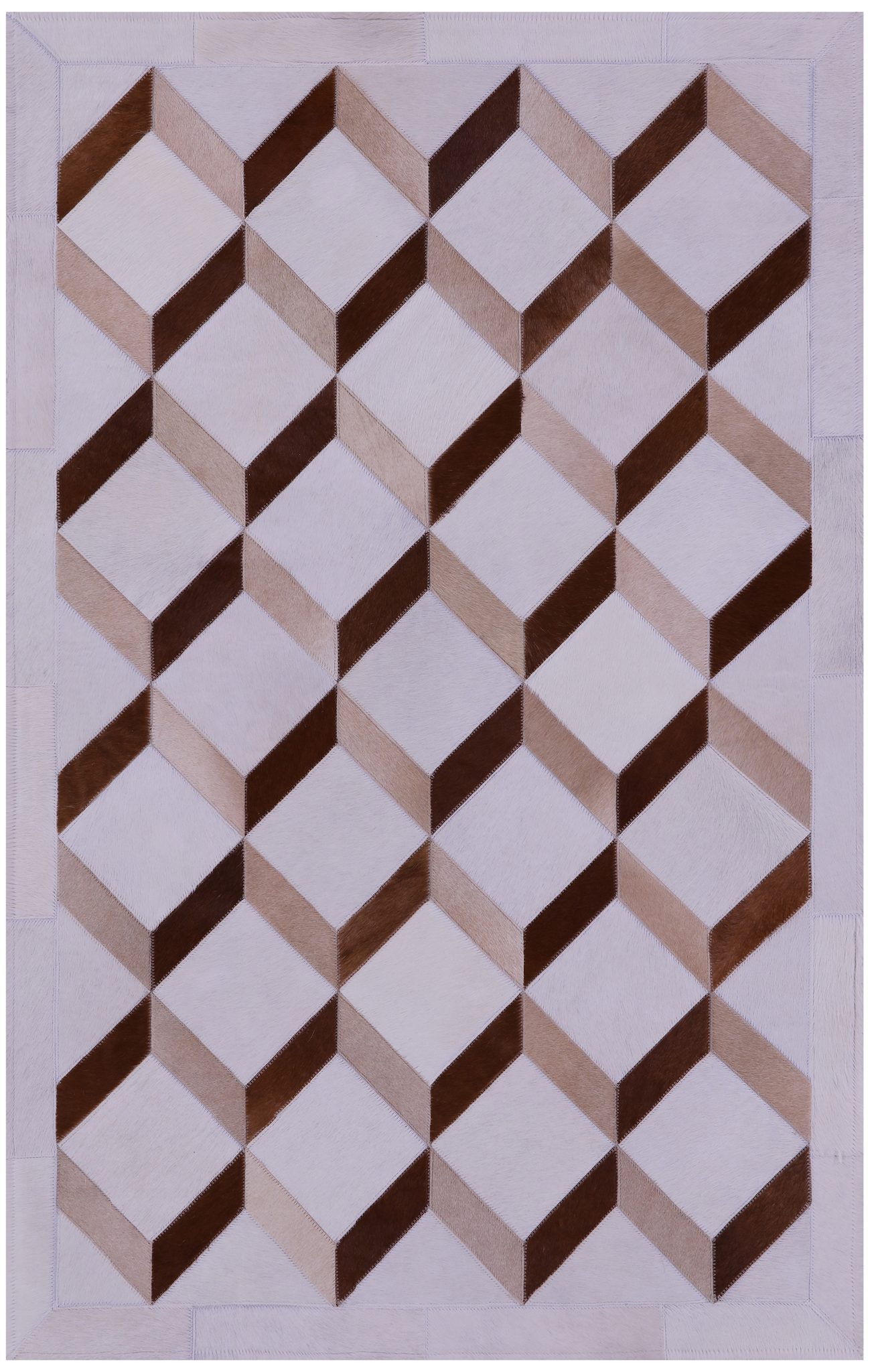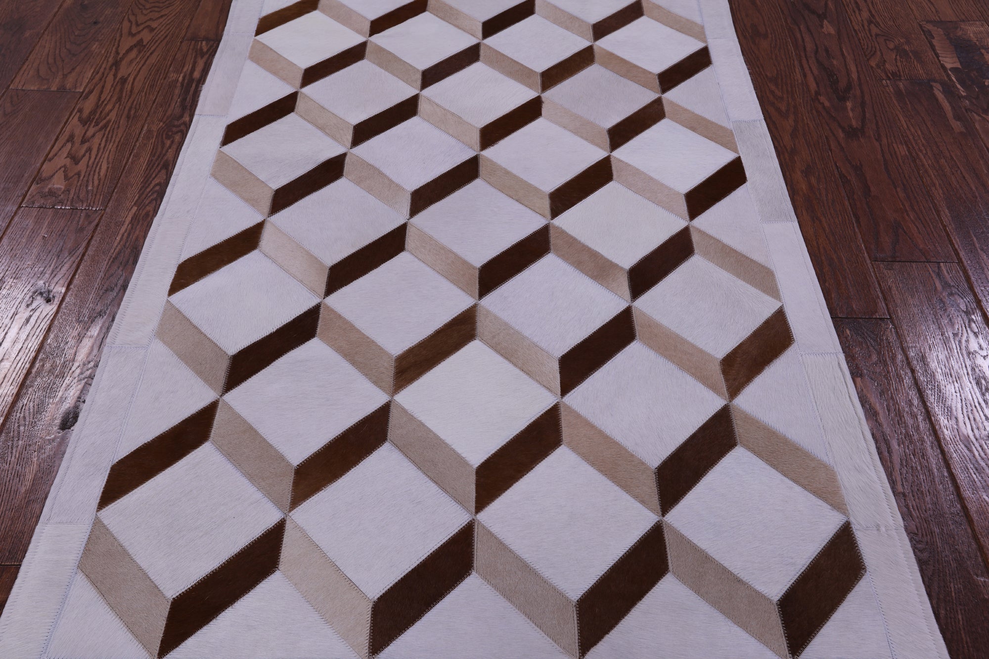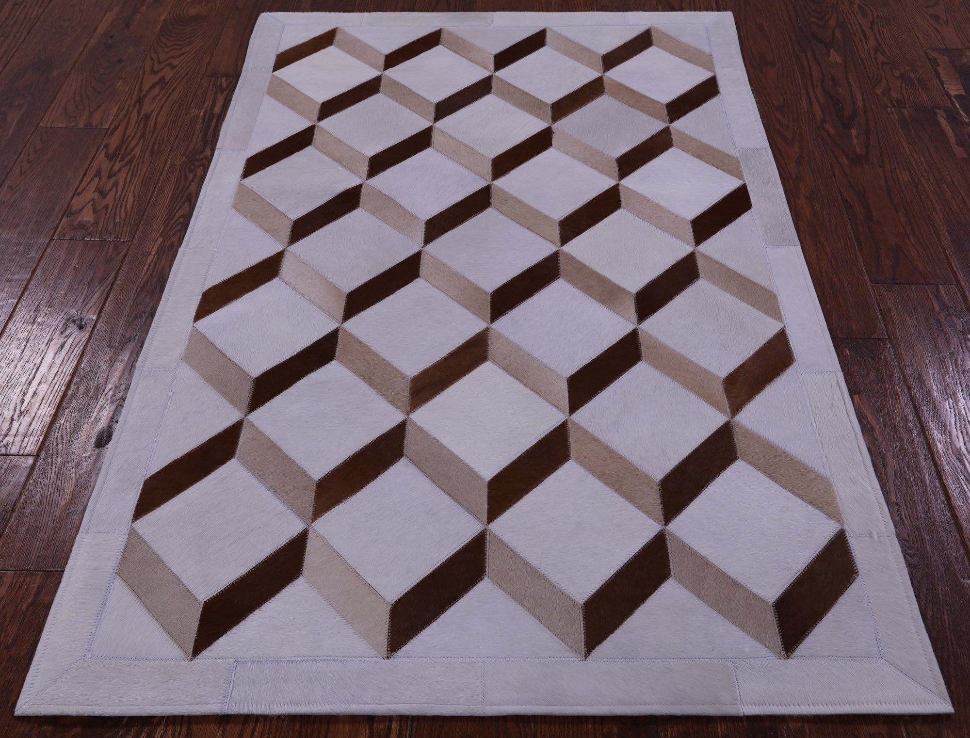 Brown & White Natural Cowhide Hand Stitched Patchwork Rug - 3' 3" X 5' 0"