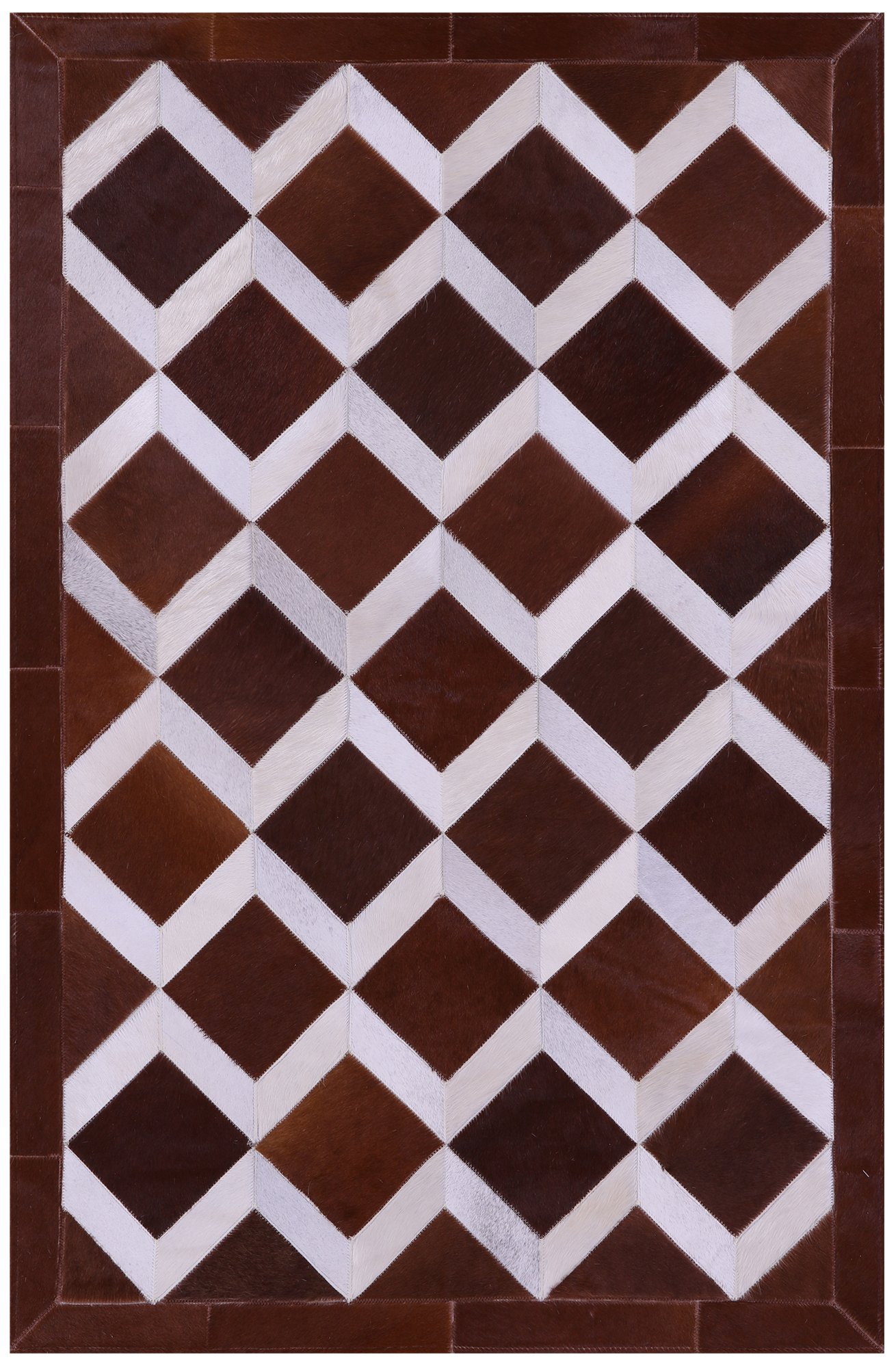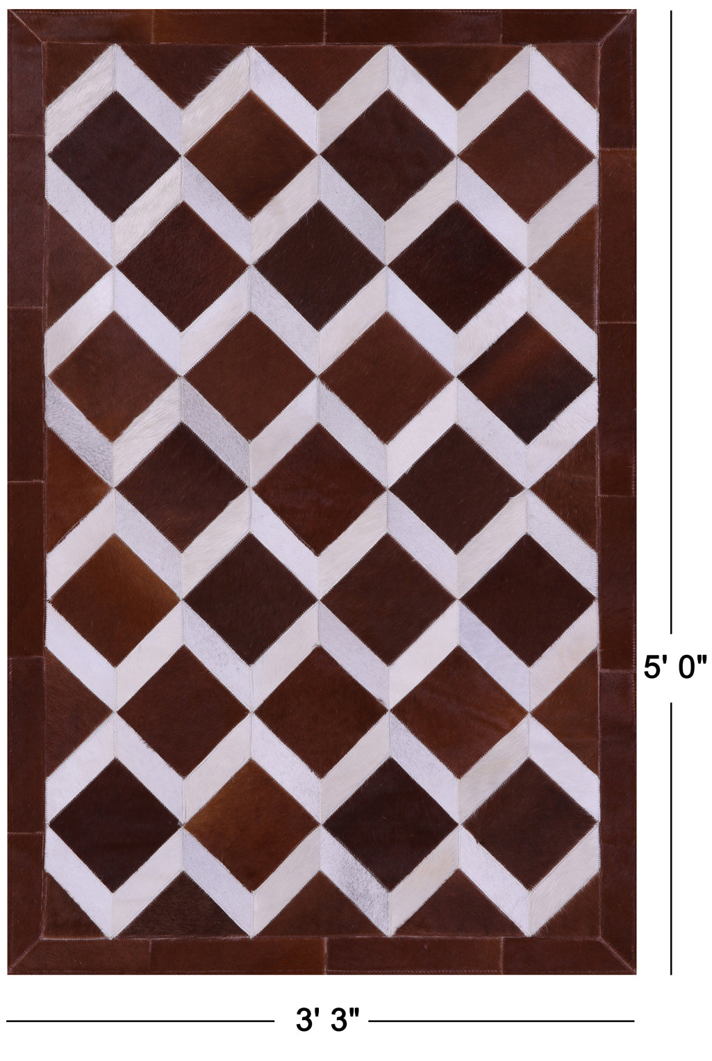 Brown & White Natural Cowhide Hand Stitched Patchwork Rug - 3' 3" X 5' 0"