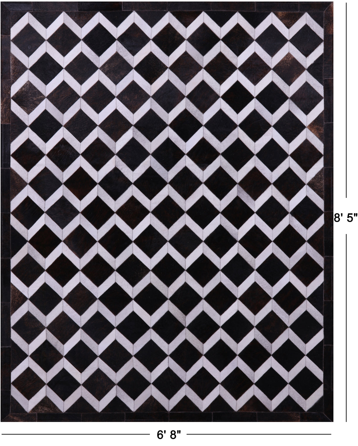 Brown & White Natural Cowhide Hand Stitched Patchwork Rug - 6' 8" X 8' 5"