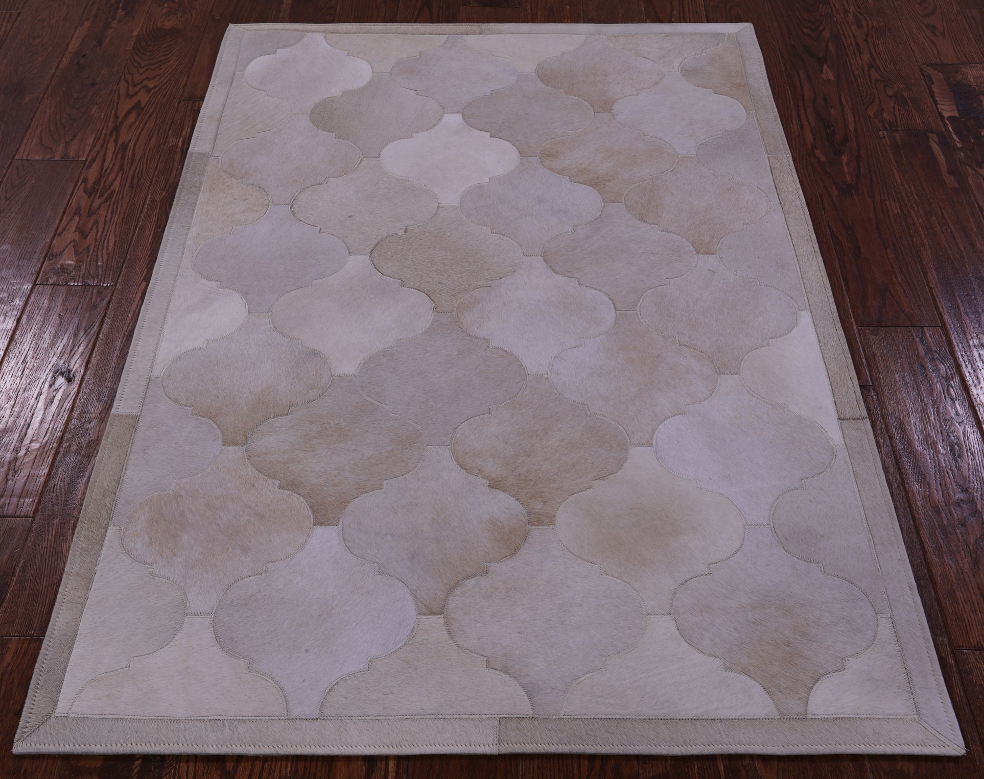 Champagne Natural Cowhide Hand Stitched Patchwork Rug - 3' 6" X 4' 11"